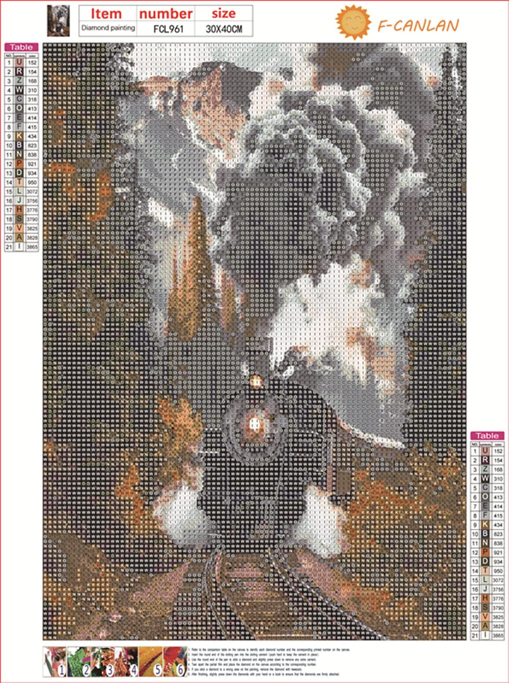 - CANVAS AND DIAMOND - Clear printing oil canvas, easy to read the letters and the pattern itself has a sticky background. And the diamonds cuts with 26 different facets to reflect lightet and realistic.