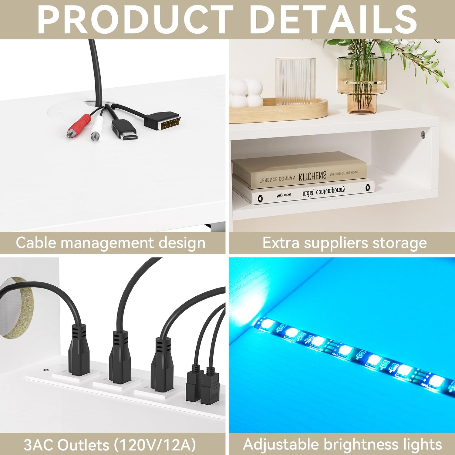 FABATO 59'' Floating TV Stand with LED Light Power Outlet, Floating Shelf for Under TV Wall Mount with Storage Shelf, Media Console Entertainment Center for Living Room, White