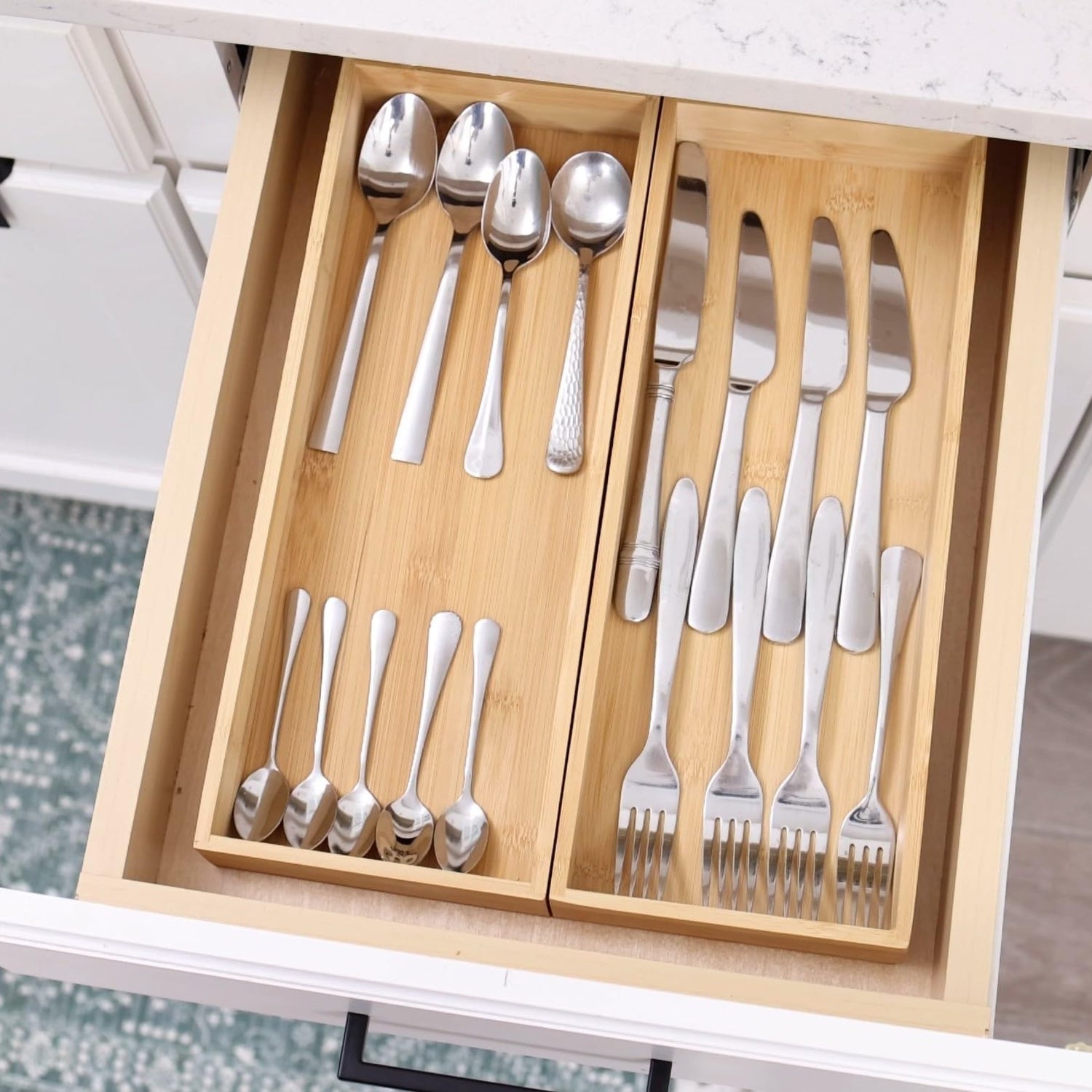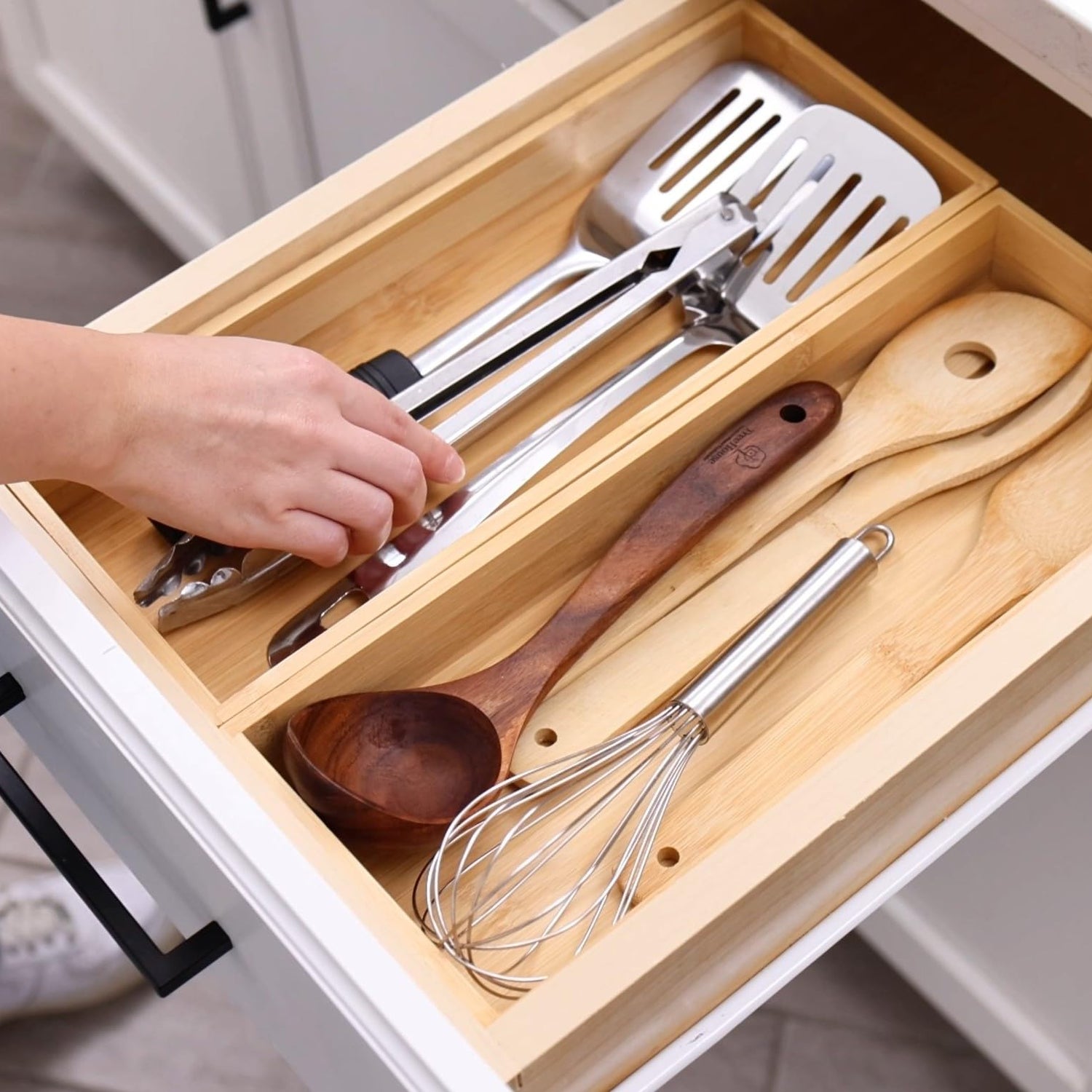 - From CHAOS to ORDER: Do you want something that looks nice and gives versatility for your kitchen/bathroom/office items in drawers? The Fabsome bamboo drawer organizer is the answer. It helps you clean up your junk drawers and put everything in order. There is a place for everything & everything is in its place, making your life a little less stressful.