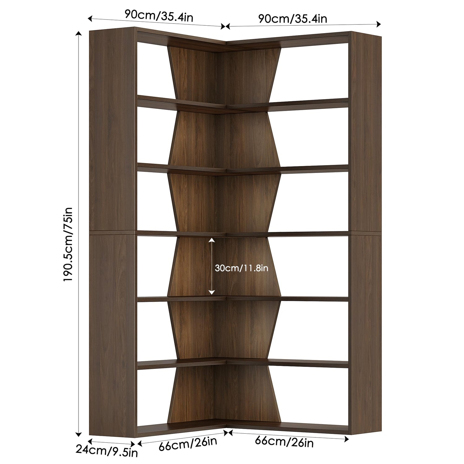 - MULTI-PURPOSE: The dark oak open corner bookshelf is modern and simple and fits effortlessly in the living room, kitchen, study, or office.