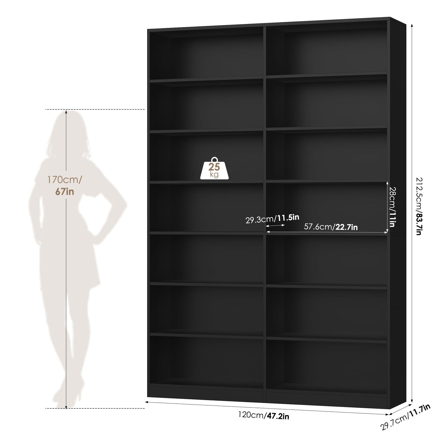 FACBOTALL 83.6" Tall Bookshelf and Bookcase, 7-Tier Extra Large Bookshelf with Double Storage, 14 Open Display Shelves for Home Office, Study and Living Room, Black