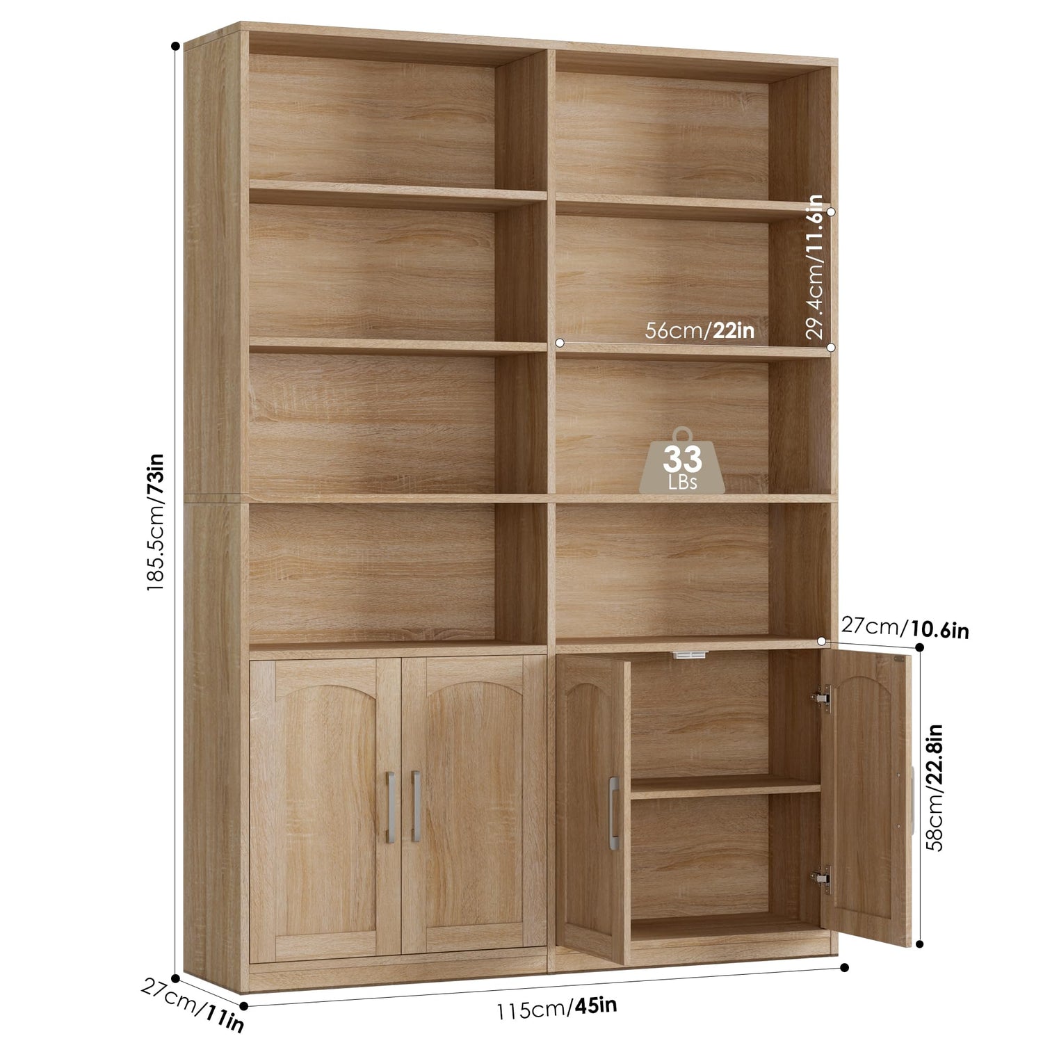 - Stable and Sturdy - Anti-tipping device and enhanced load-bearing capacity (up to 33 lbs per shelf) ensure that big bookshelves can hold a large amount of items without tipping or sagging
