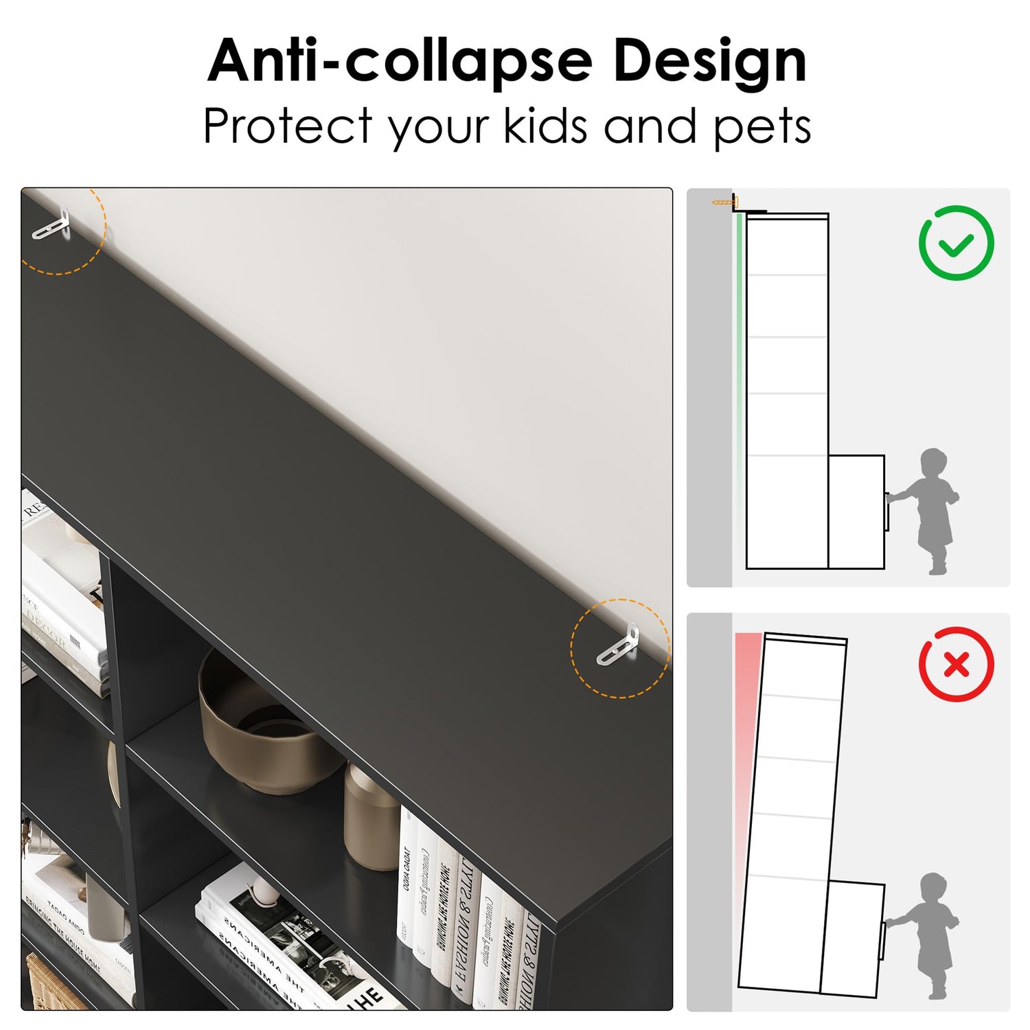 - Stable and Sturdy - Anti-tipping device and enhanced load-bearing capacity (up to 33 lbs per shelf) ensure that big bookshelves can hold a large amount of items without tipping or sagging