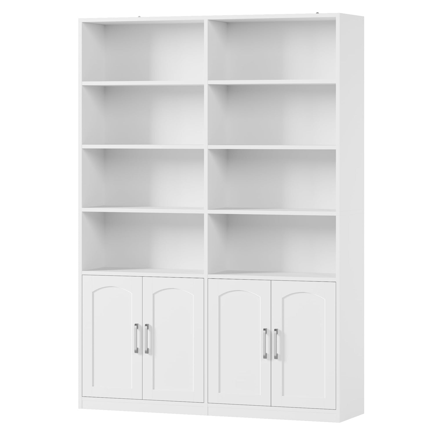 FACBOTALL Bookshelf and Bookcase with Doors, 6 Tier Double Wide Large Bookshelves, Open Display Shelves, 73'' Tall Bookshelf with Storage Cabinets for Home Office, Living Room, Library, White