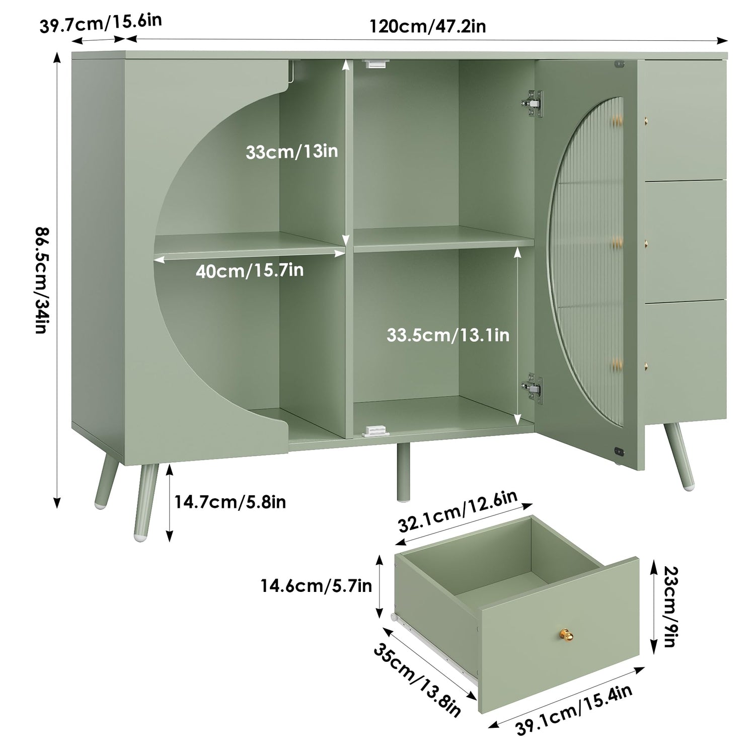 - Charming Design: Semi-circular open shelves with semi-circular glass doors add a touch of uniqueness and beauty to your room, and make your space more inviting.