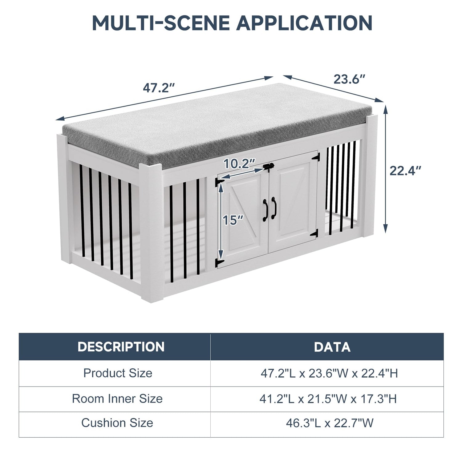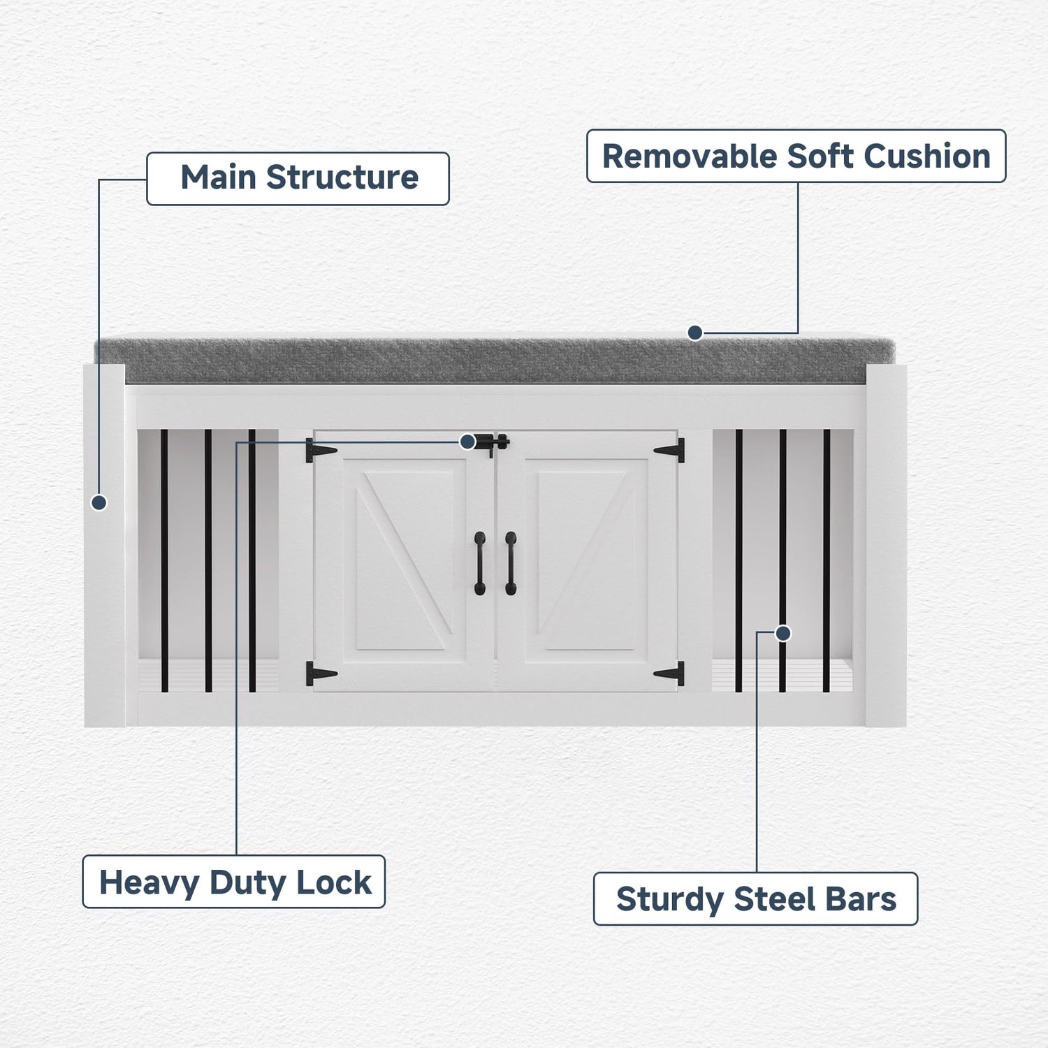 - EASY UPKEEP: This dog crate bench design focuses on your convenience. With a removable cushion and easily accessible doors, cleaning and maintenance are effortless, promoting a clean living space for your pet.