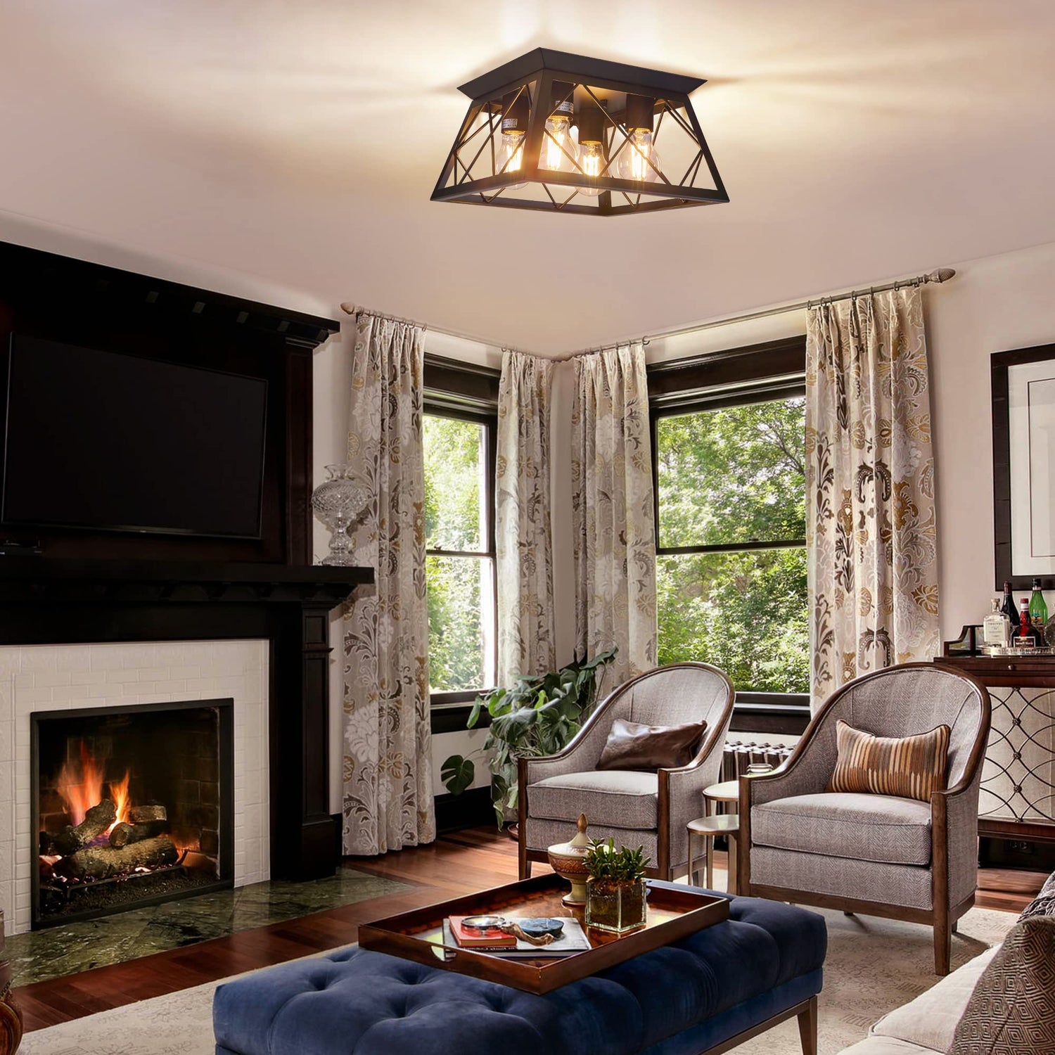 - 【INDUSTRIAL CLOSE TO CEILING LIGHT】This 4 lights flush mount light fixture features a solid black frame and metal canopy, which embodies the charming charm of retro and modern. The kitchen light fixture provides an industrial and rustic look will add a vintage touch to your space, create striking lighting effects for your home's ceiling.