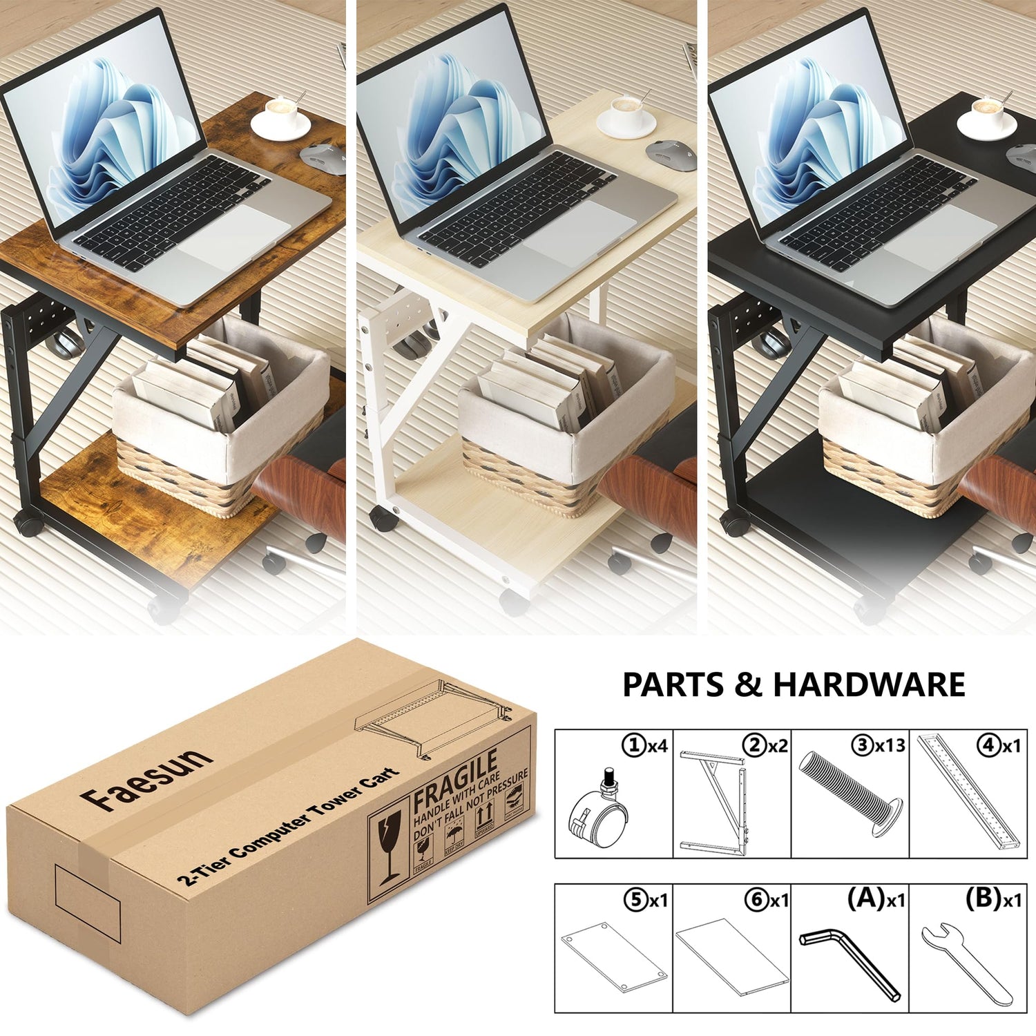 Faesun Computer Tower Cart - Height Adjustable PC Stand, 2-Tier ATX-Case CPU Holder Home Office Gaming Desk Accessories with Rolling Lockable Wheels, Laptop Table Standing Computer Desk, Rustic Black