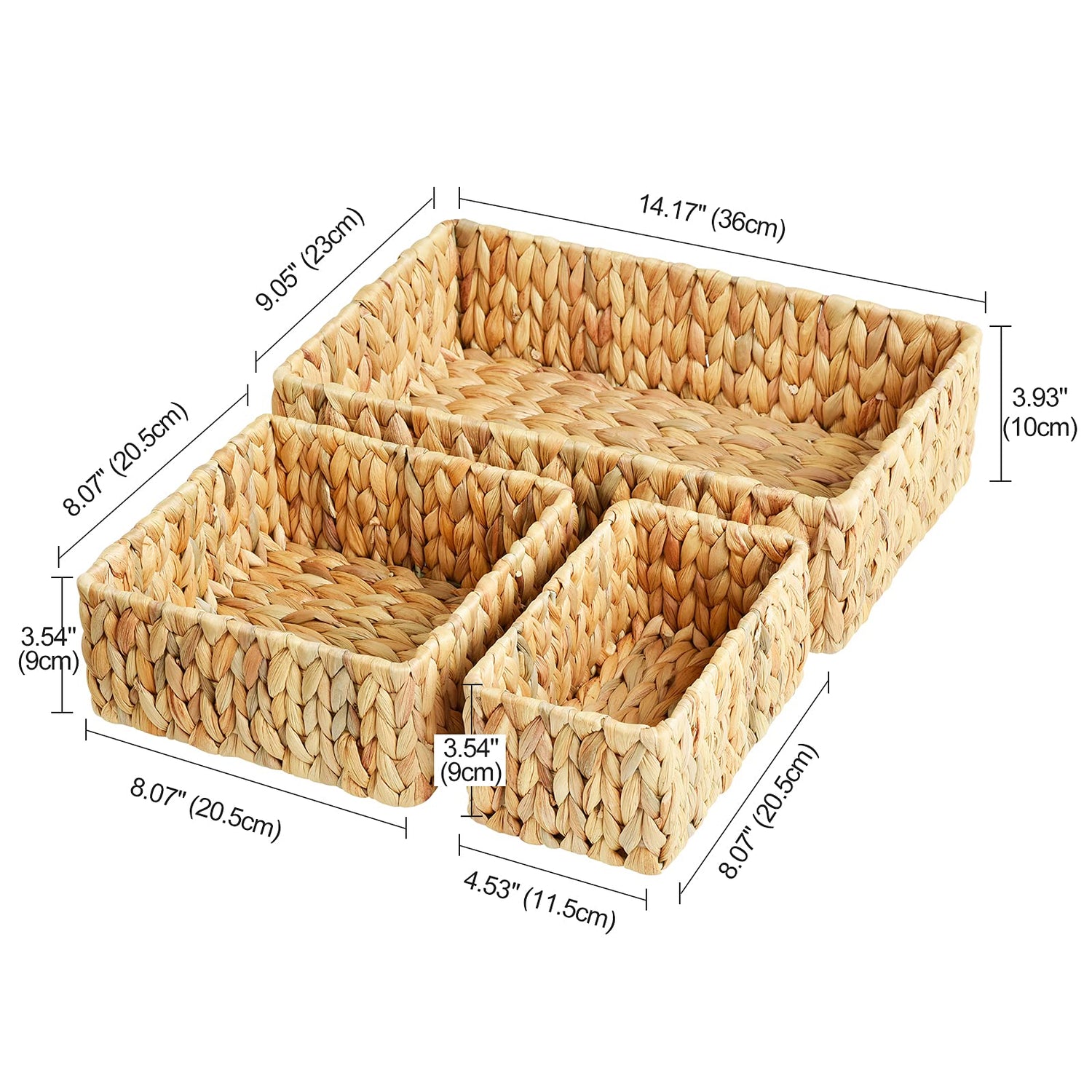 - Set for You: Set of 3 valuable organization and storage baskets for woven and man. Large wicker basket size: 14.17" x 9.05" x 3.93", medium storage box size: 8.07" x 8.07" x 3.54", small wicker basket size: 8.07" x 4.52" x 3.54" (LxWxH). This storage basket fits all people, if you have questions, please contract us for immediate assistance.