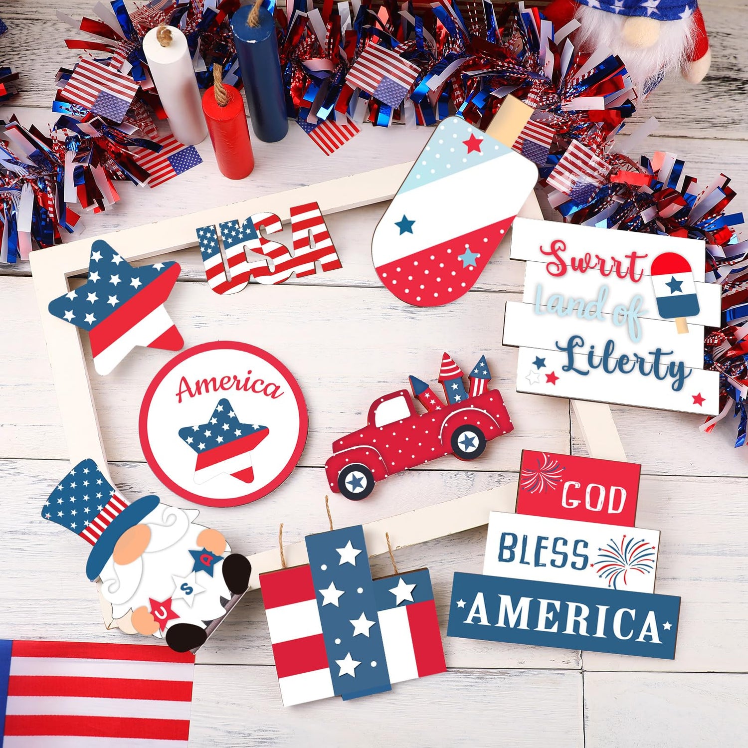 - Applicable Occasion: our patriotic home decor can be widely applied on desks, tables, tiered trays, mantels, shelves, and fireplaces at home or in your workplace, it can fit well with your house; You can also use it on Memorial Day, Veterans Day, Independence Day and other important national festivals