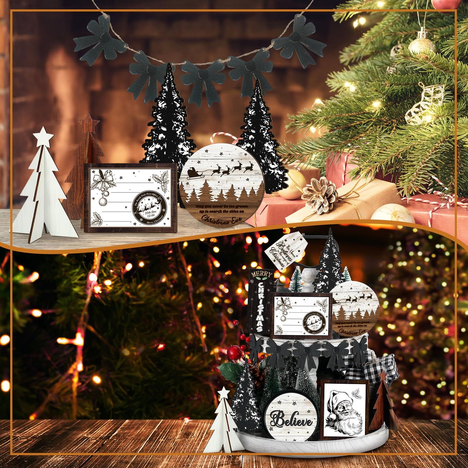 - Christmas Theme Design: Christmas tiered tray decor set mainly adopts brown and white, designed with various classic Christmas elements, such as Santa Claus, bows and Christmas tree, creating a warm and festival atmosphere