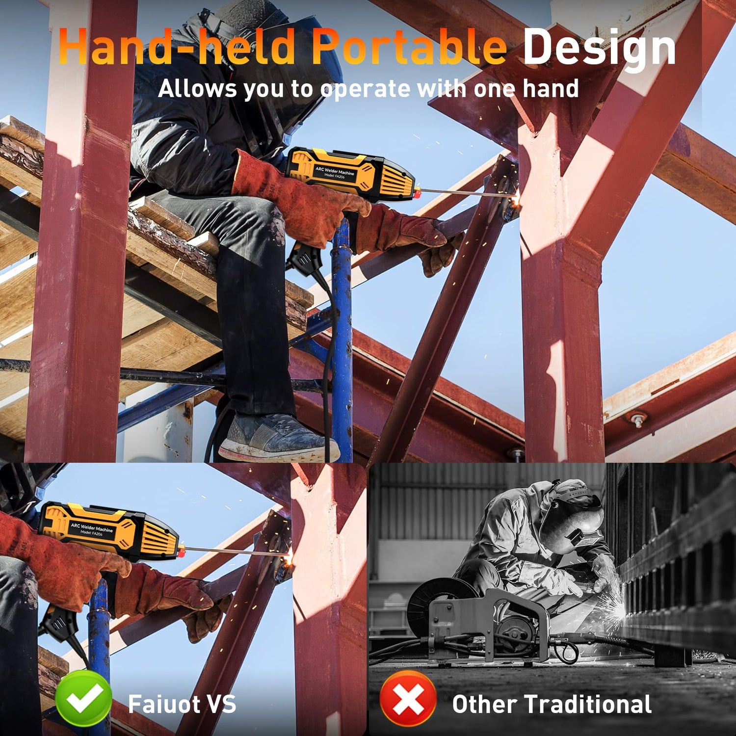 - Advanced IGBT Inverter Technology for Top-Notch Welding Performance: Say goodbye to messy welds! This portable welder is powered by cutting-edge IGBT inverter technology, ensuring smooth, spatter-free welds with every use. Whether you're fixing a fence, working on a DIY project, or tackling a professional repair, this electric portable welding machine guarantees you’ll get precise, high-quality results. You’ll save time, reduce waste, and enjoy perfect welds every time—no matter what you're welding.