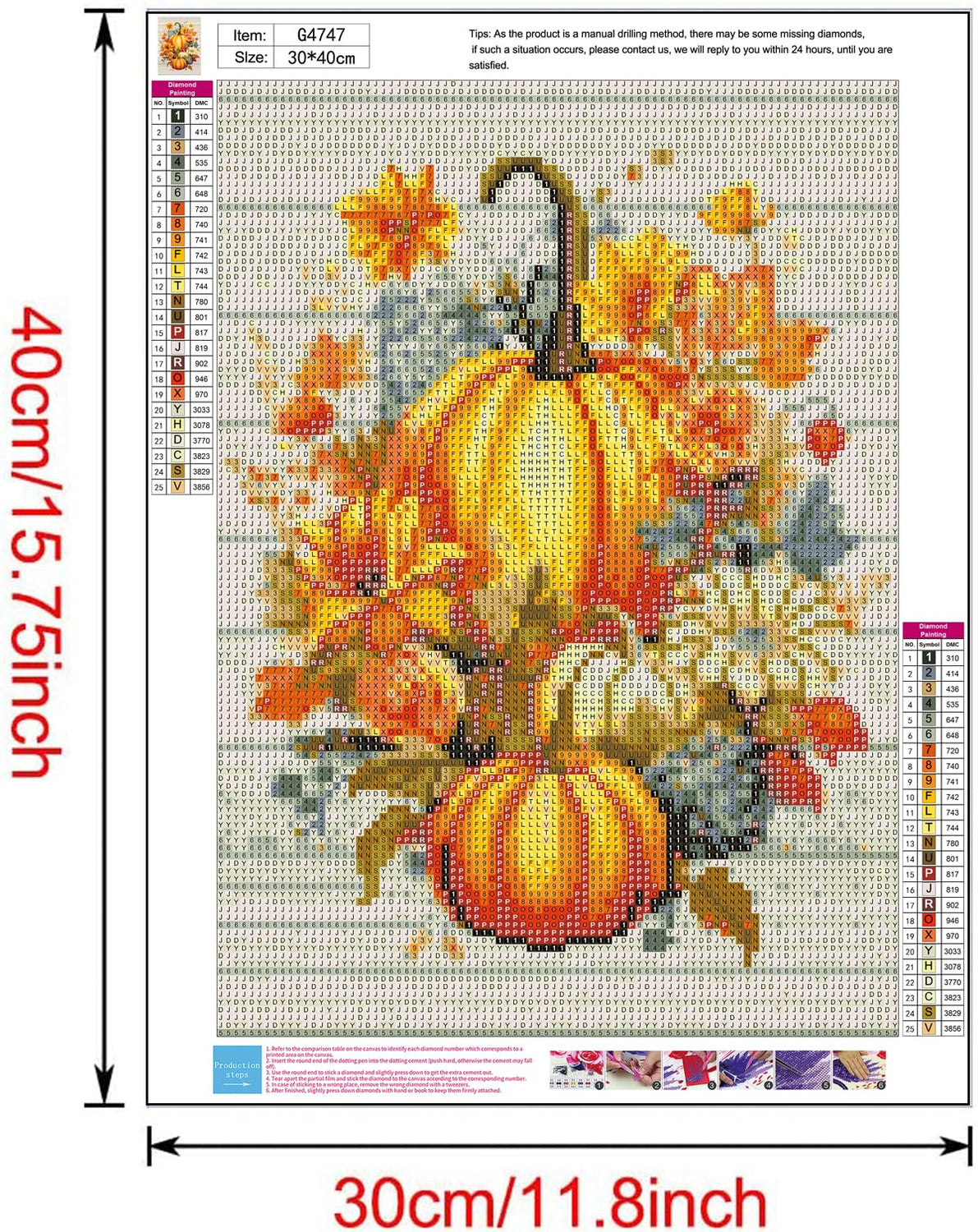 Fall Diamond Painting Kits for Adults,5D DIY Diamond Art Kits Full Round Drill, Pumpkins with Flowers Picture Paint with Diamonds Crafts Mosaic Art for Home Wall Decor 12X16 Inch(30X40CM