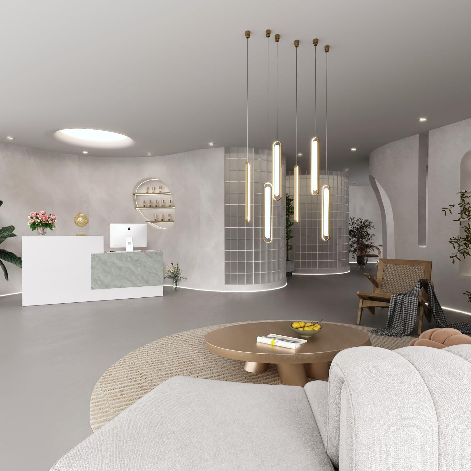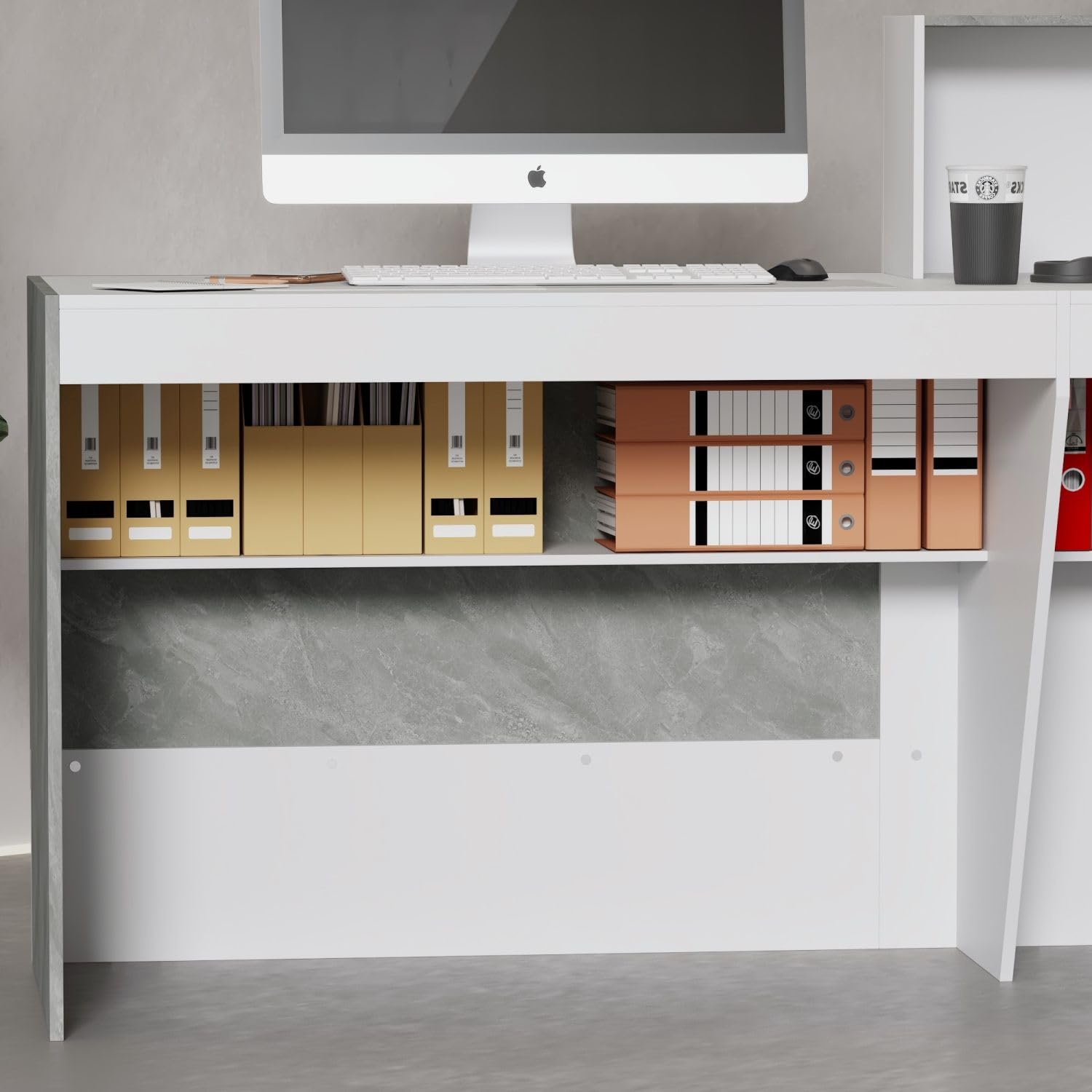 - Modern and Stylish - The appearance of this white reception desk is modern and minimalist with grey marble grain on the exterior. Sleek lines and geometric pattern add a touch of elegance and style. It will be a nice choice for reception.