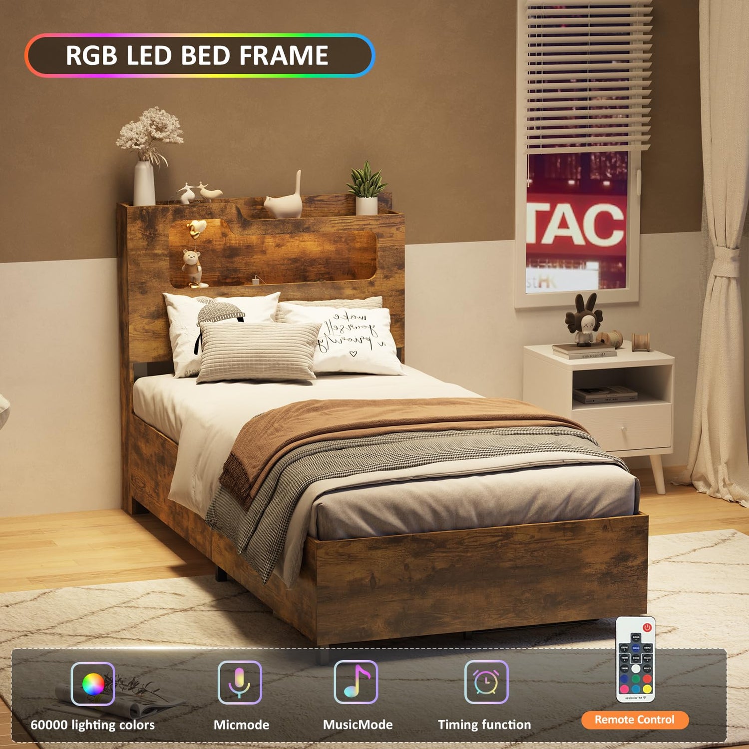 - 【Elegant RGB Lighting】- The bed frame is equipped with RGB lights that add a touch of elegance to your sleep space. Customize the lighting to create a soothing atmosphere or set a festive mood, depending on your preferences.