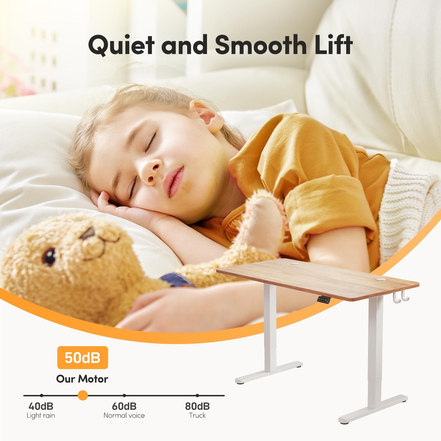 FAMISKY Height Adjustable Standing Desk, 48x 24 Inch Electric Stand up Home Office Table, Sit Stand Desk Computer Workstation with Splice Board, White Frame & Light Rustic Brown Desktop