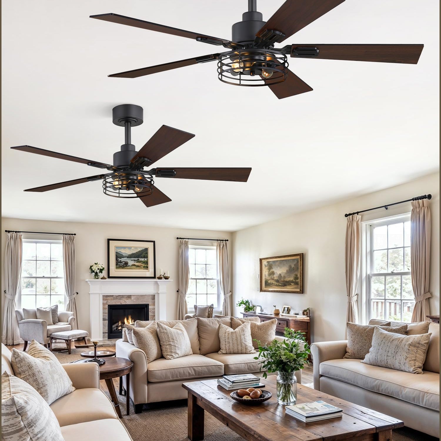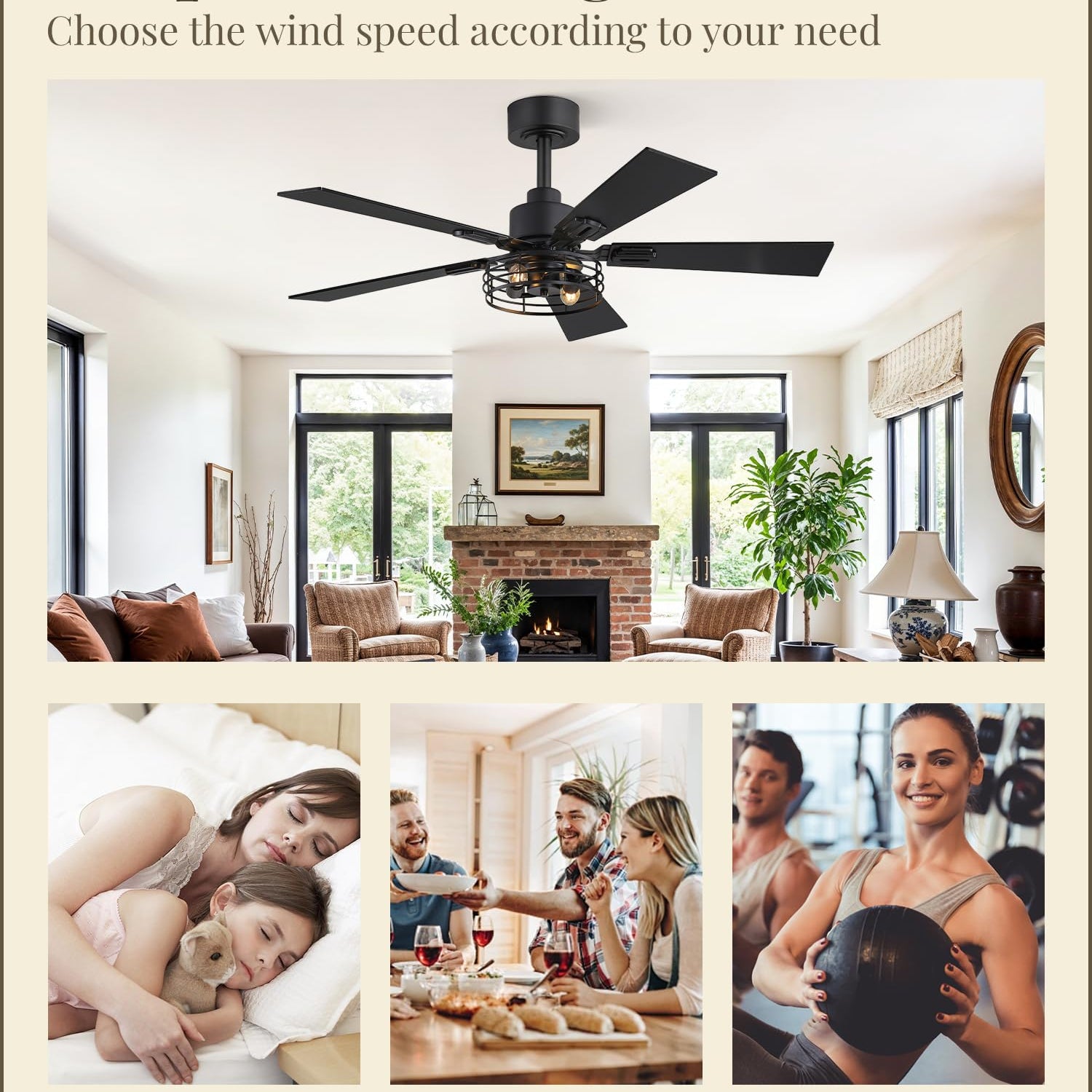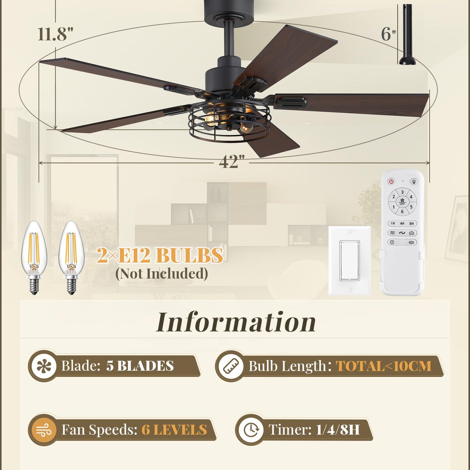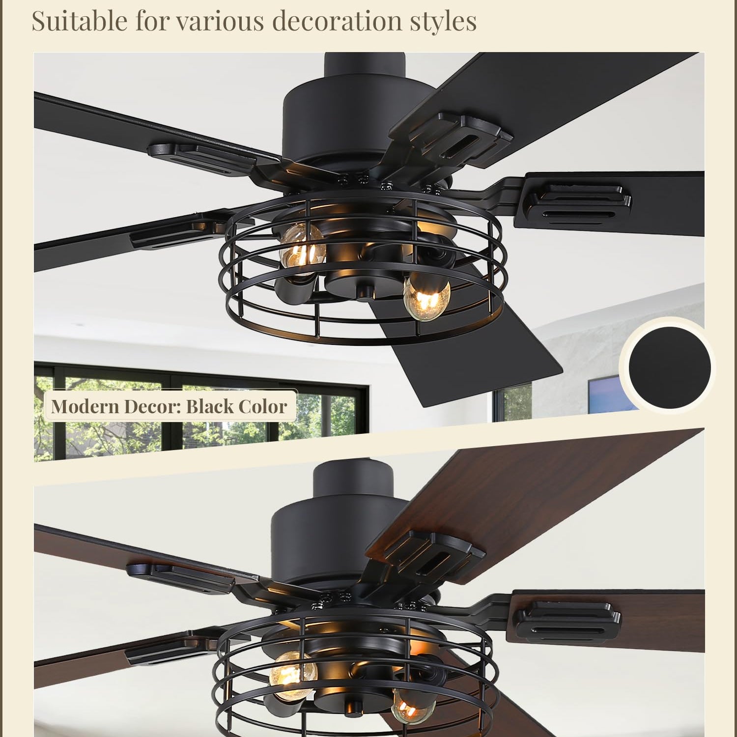 - Classic Farmhouse Decor Design: This 42 Inch caged rustic ceiling fan is peferct house decor which combines design and function. We also provide 2 double-sided color blades for you to choose to suit the modern style