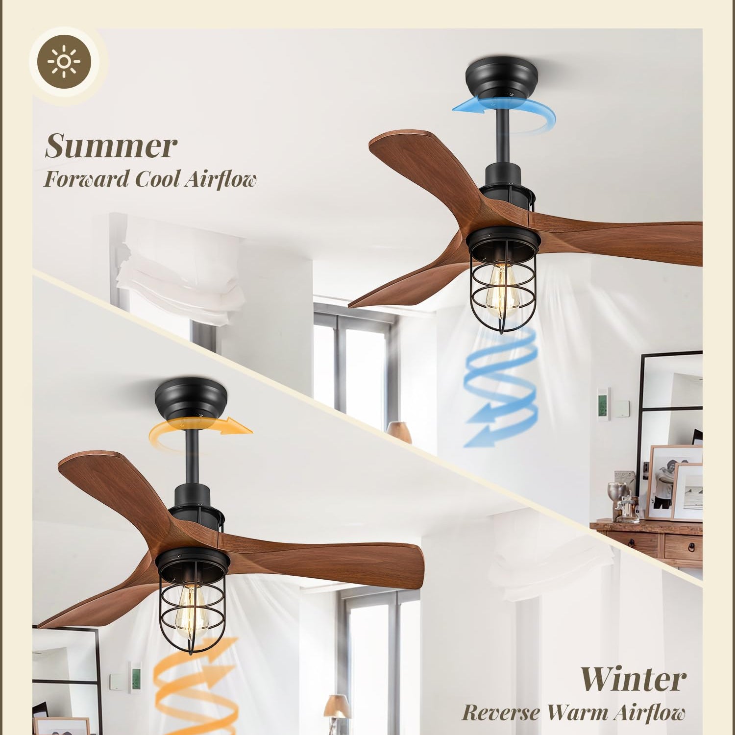 - DC MOTOR TECHNOLOGY: Fanbulous caged ceiling fan operates with remarkable efficiency and energy savings,powered by advanced reversible DC motor technology.And forward cooling airflow in summer and reversal for better air circulation in winter.