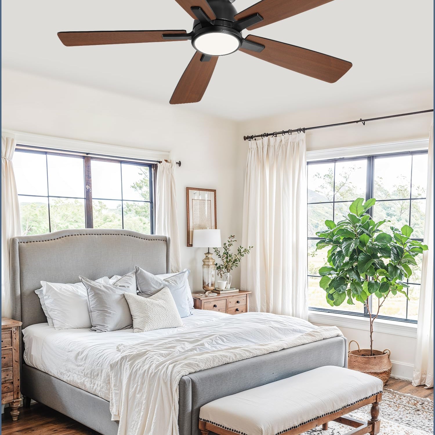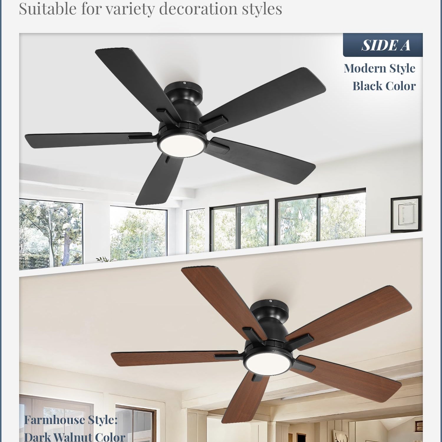 - DECORATE YOUR ROOM PERFECTLY: This ceiling fan with light features a stylish combination of black and walnut wood. Bedroom ceiling fan skillfully combines modern and rustic elements, not only suitable for decorating various styles of rooms, but also adds a unique charm to your living environment