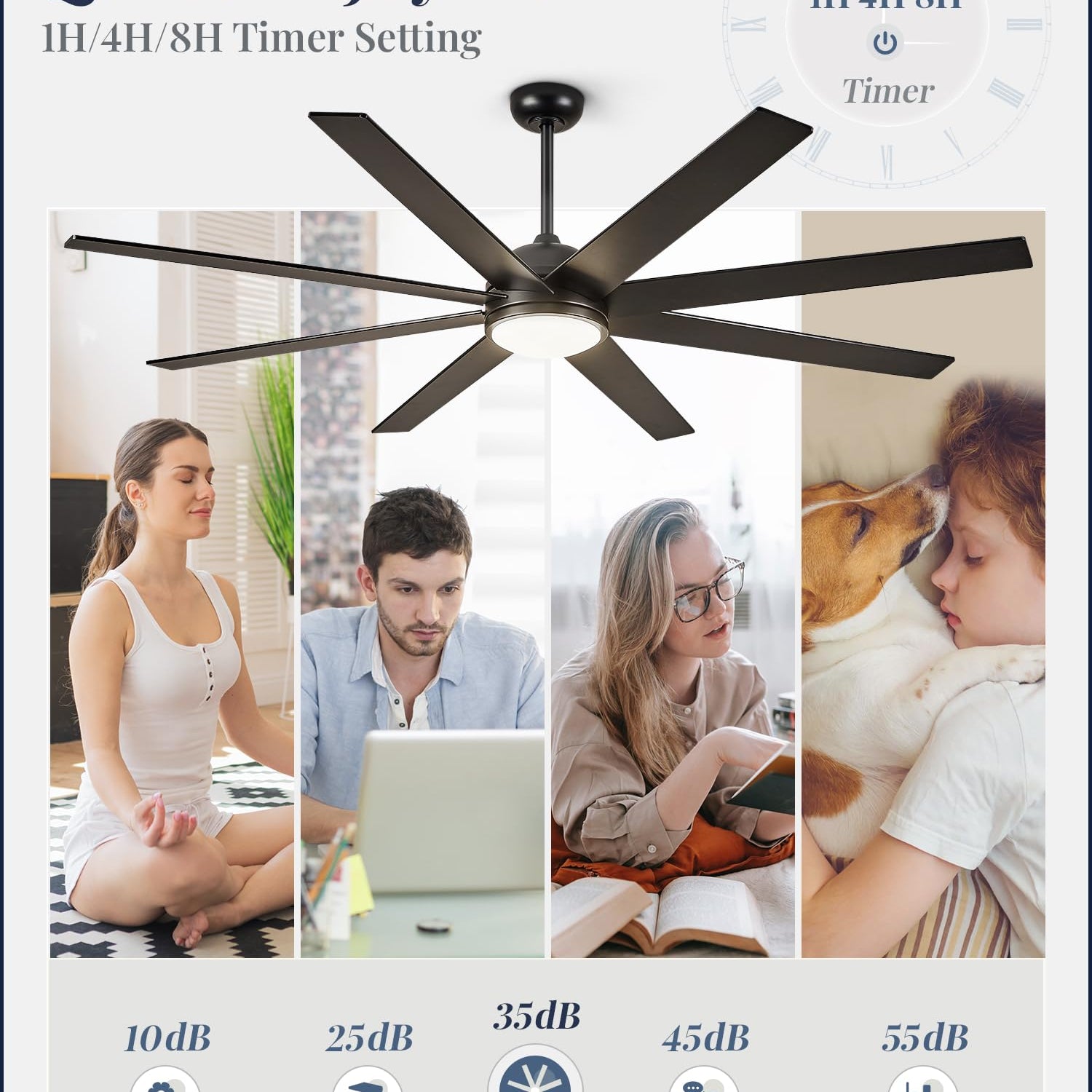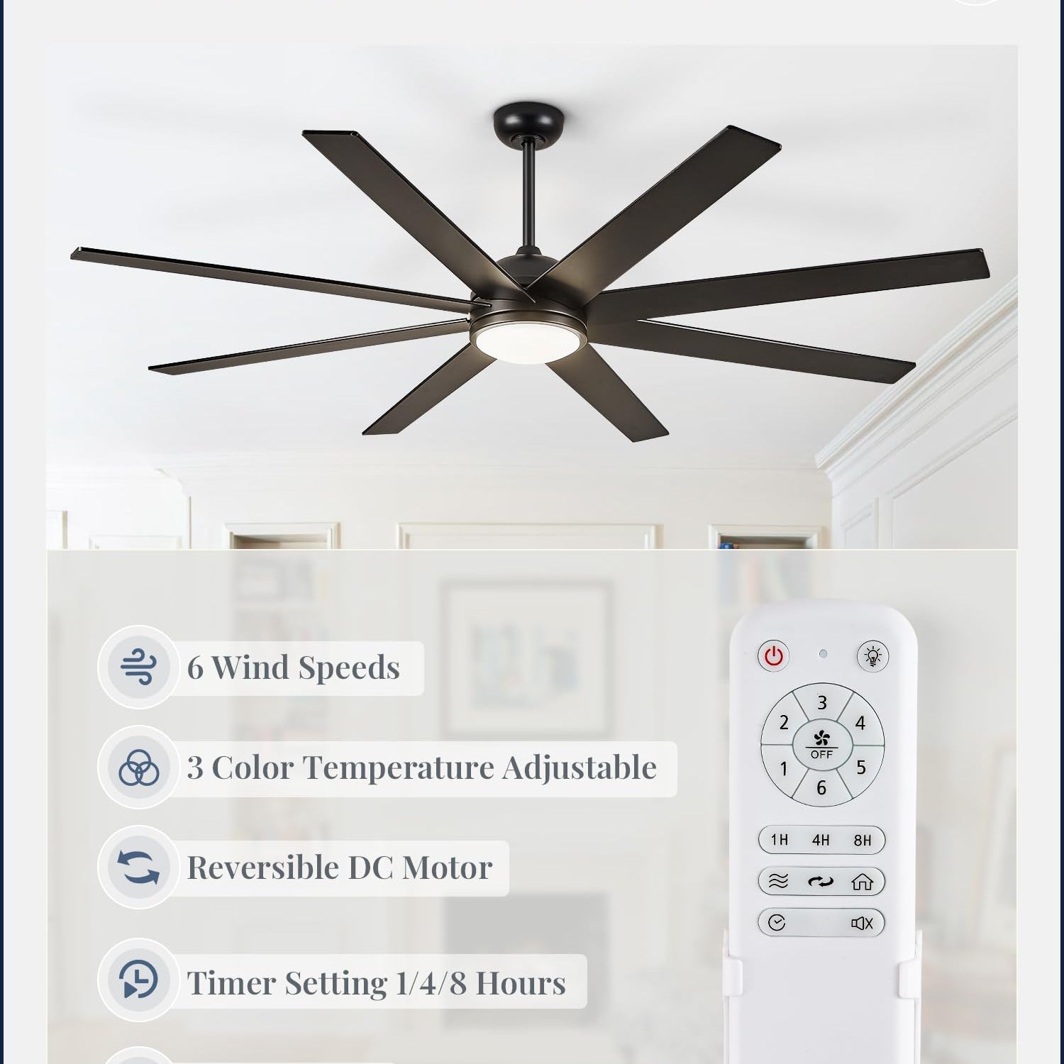 - 6 Wind Speeds Remote Control: The remote can be set to mute without any beeping, ensuring quiet convenience without disturbing your family. You can easily control 4 key features with the remote: 6 wind speeds, 3 color temperature, reversible mode, 1/4/8-hour timer, providing remarkable convenience