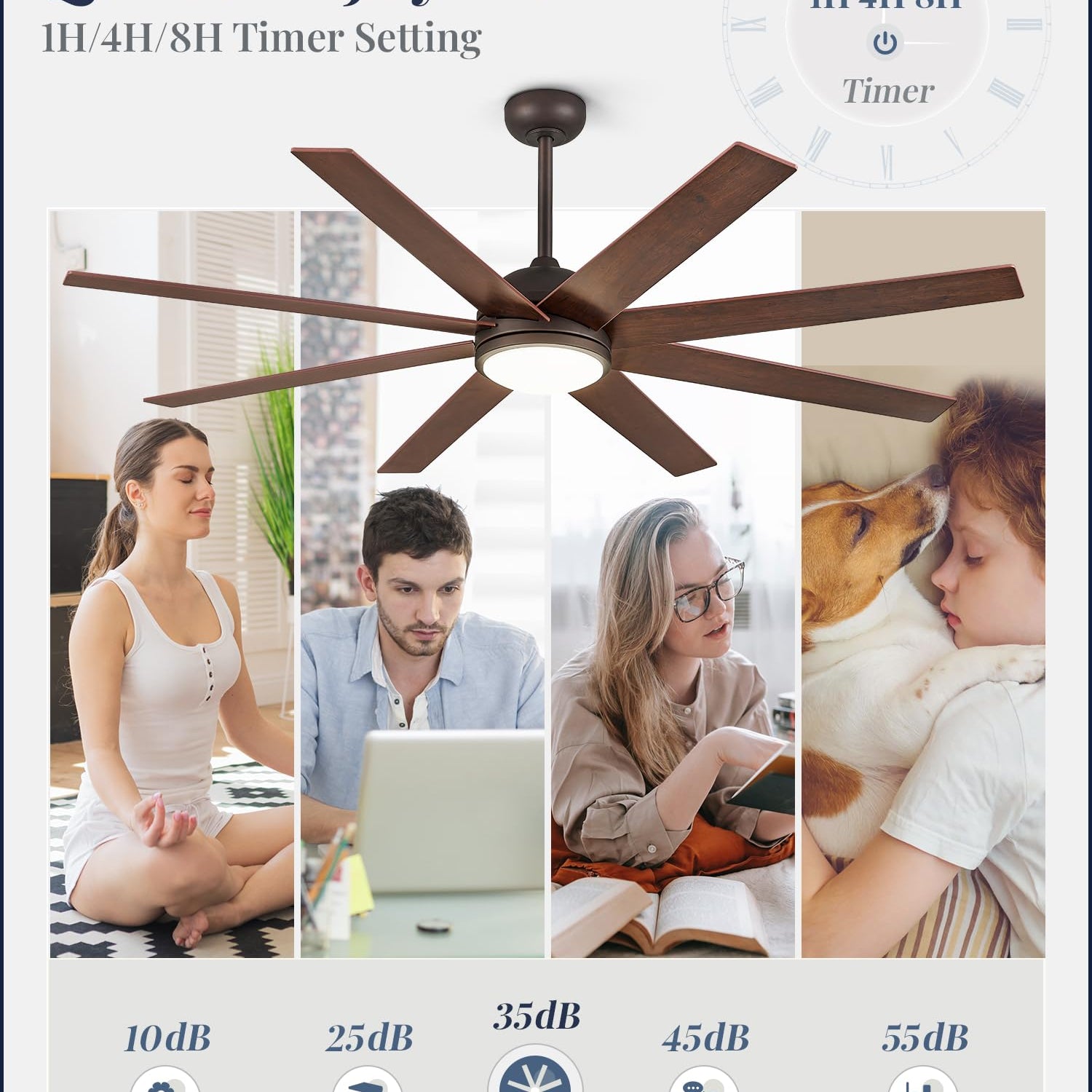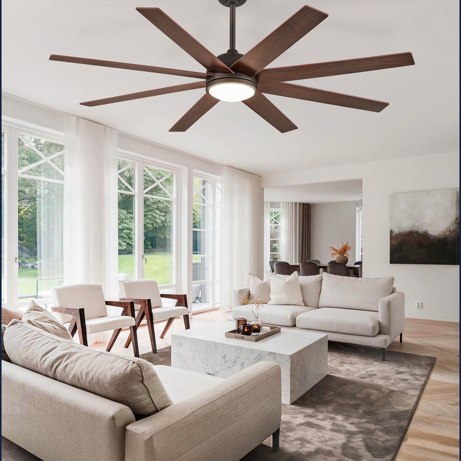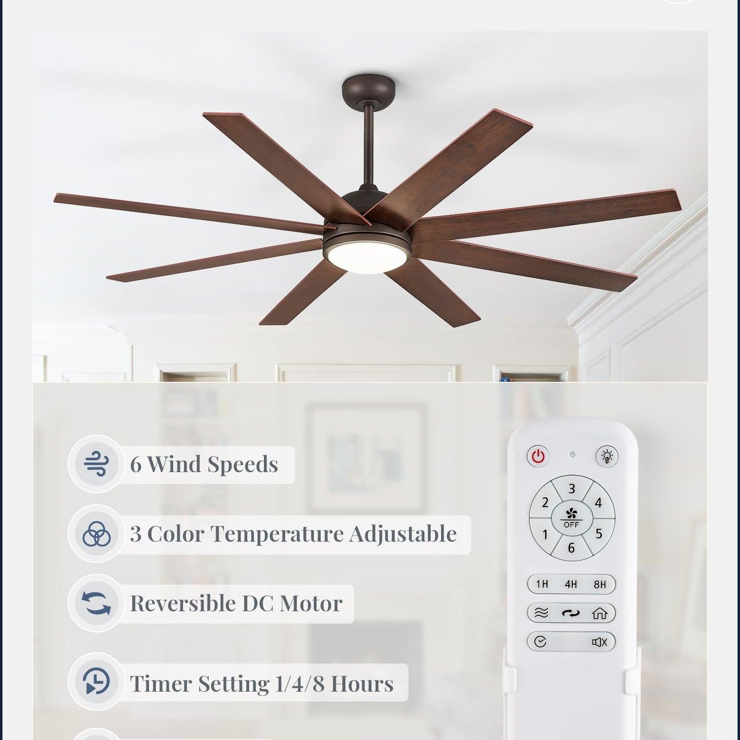 Fanbulous 65 Inch Ceiling Fans with Lights and Remote, Walnut Indoor/Outdoor Ceiling Fan with Quiet Reversible DC Motor, 6 Speeds, 3CCT, 8 Blades Large Ceiling Fan for Living Room Bedroom Patio