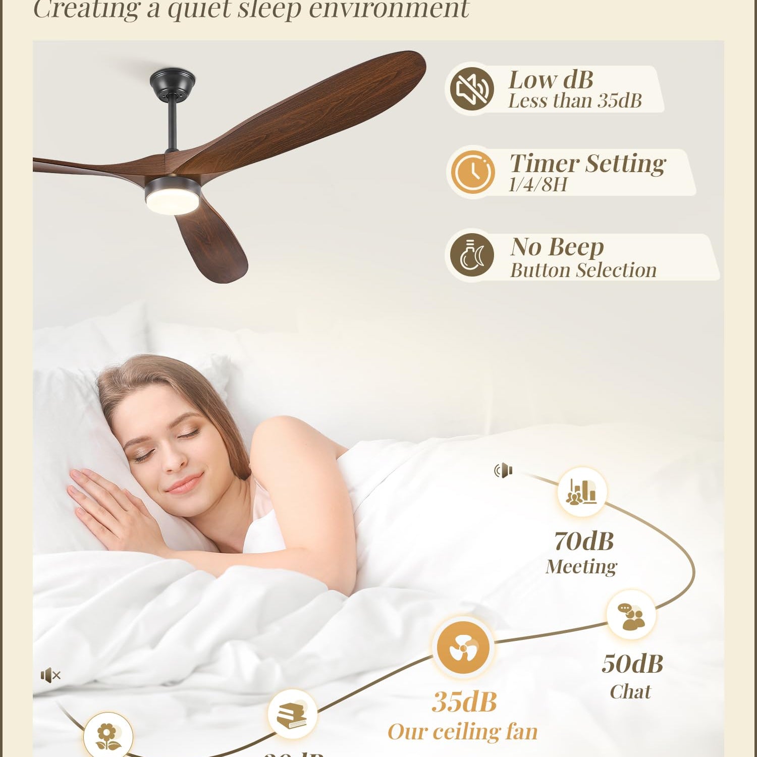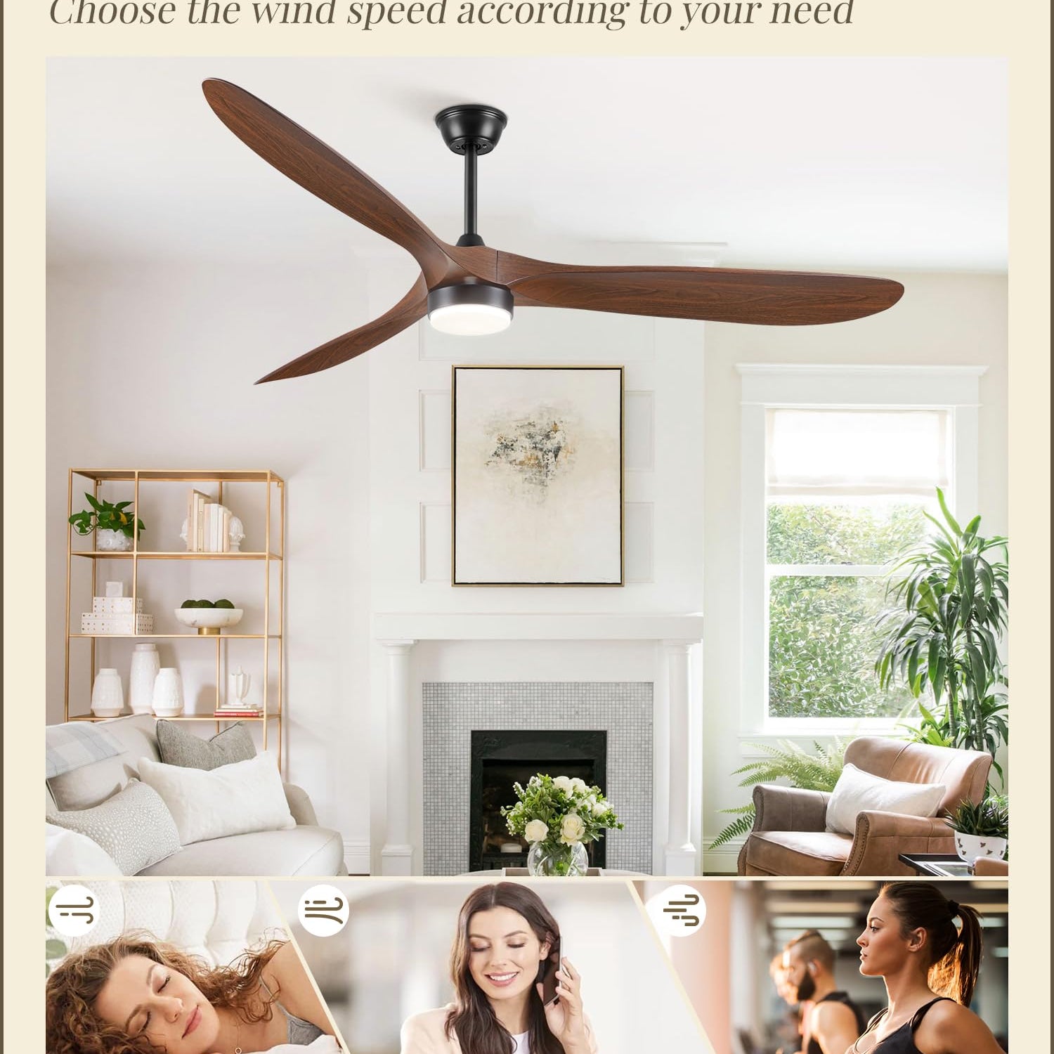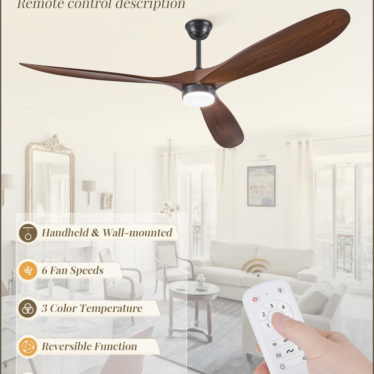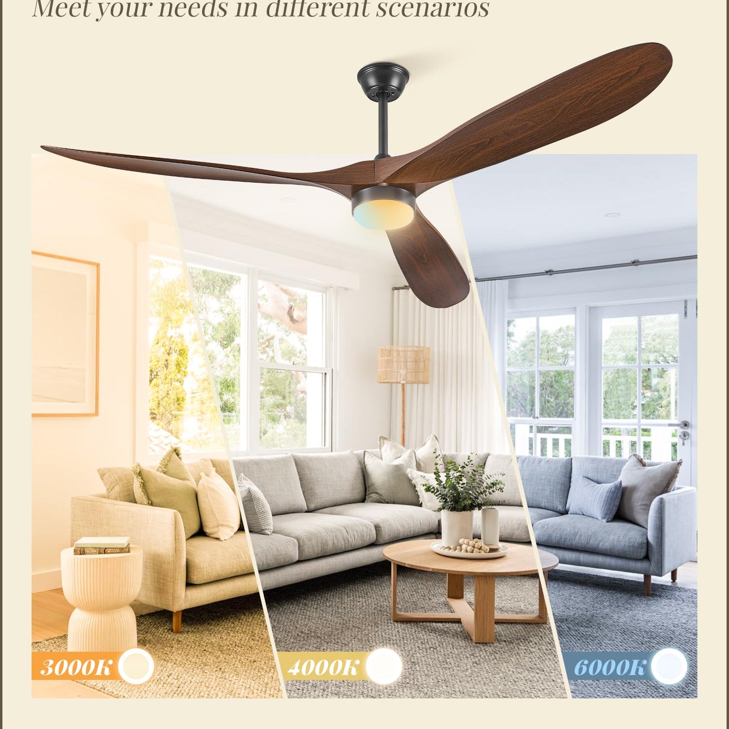 - MULTIFUNCTIO: 3 Blade Large Ceiling Fan comes with a remote control, you can adjust 6 wind speeds, change the wind direction, set the timer function (1/4/8H), 3 adjustable color temperatures and no-beep option. The stylish and simple design makes it suitable for living room, outdoor and patio