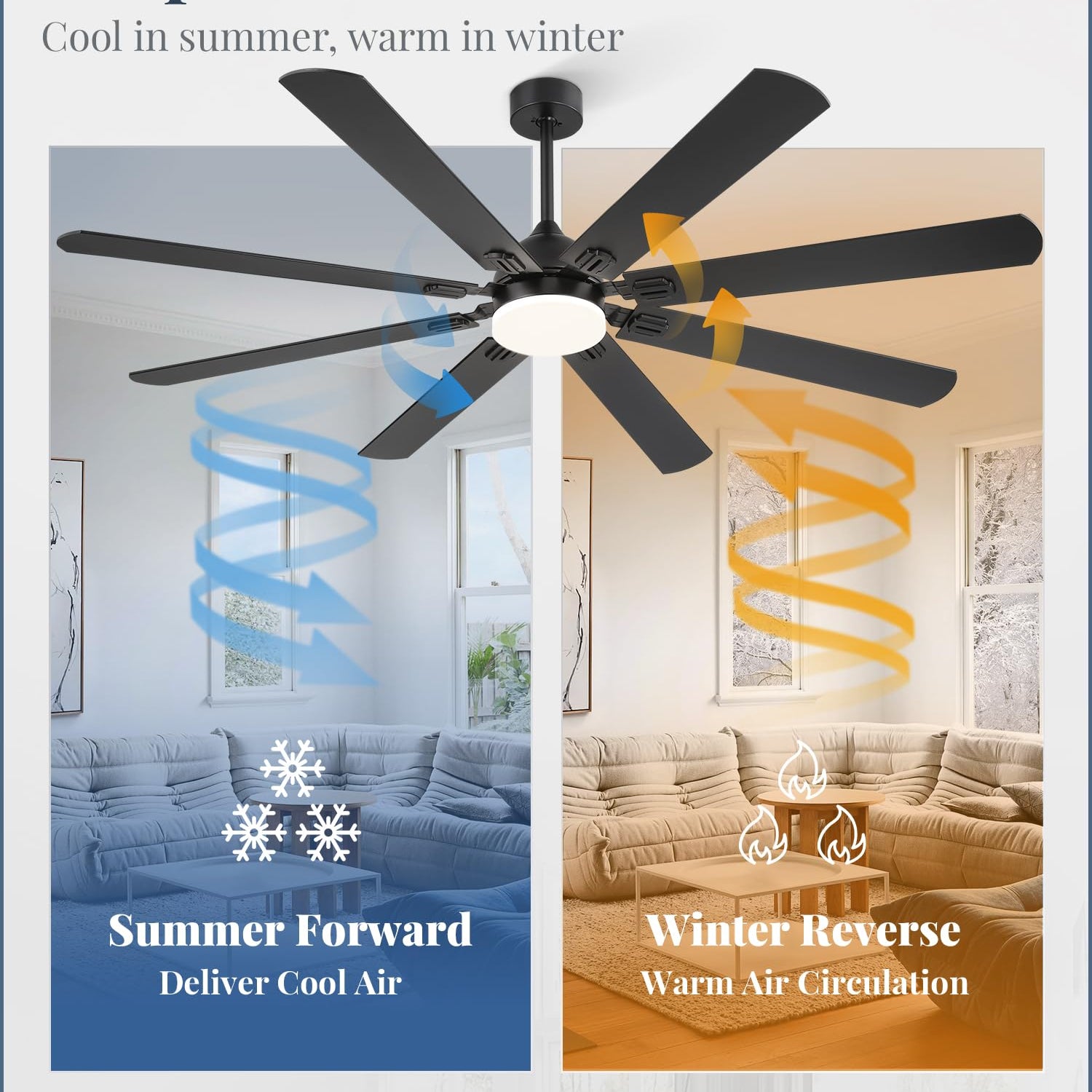 - Reversible DC Motor: The Fanbulous black ceiling fan with light is equipped with a high-speed reversible motor, delivering a cool breeze downward in summer and optimizing air circulation in winter. It offers 6 adjustable wind speeds, providing an excellent wind experience. The large ceiling fan can be used all year round and is superior to traditional AC motors
