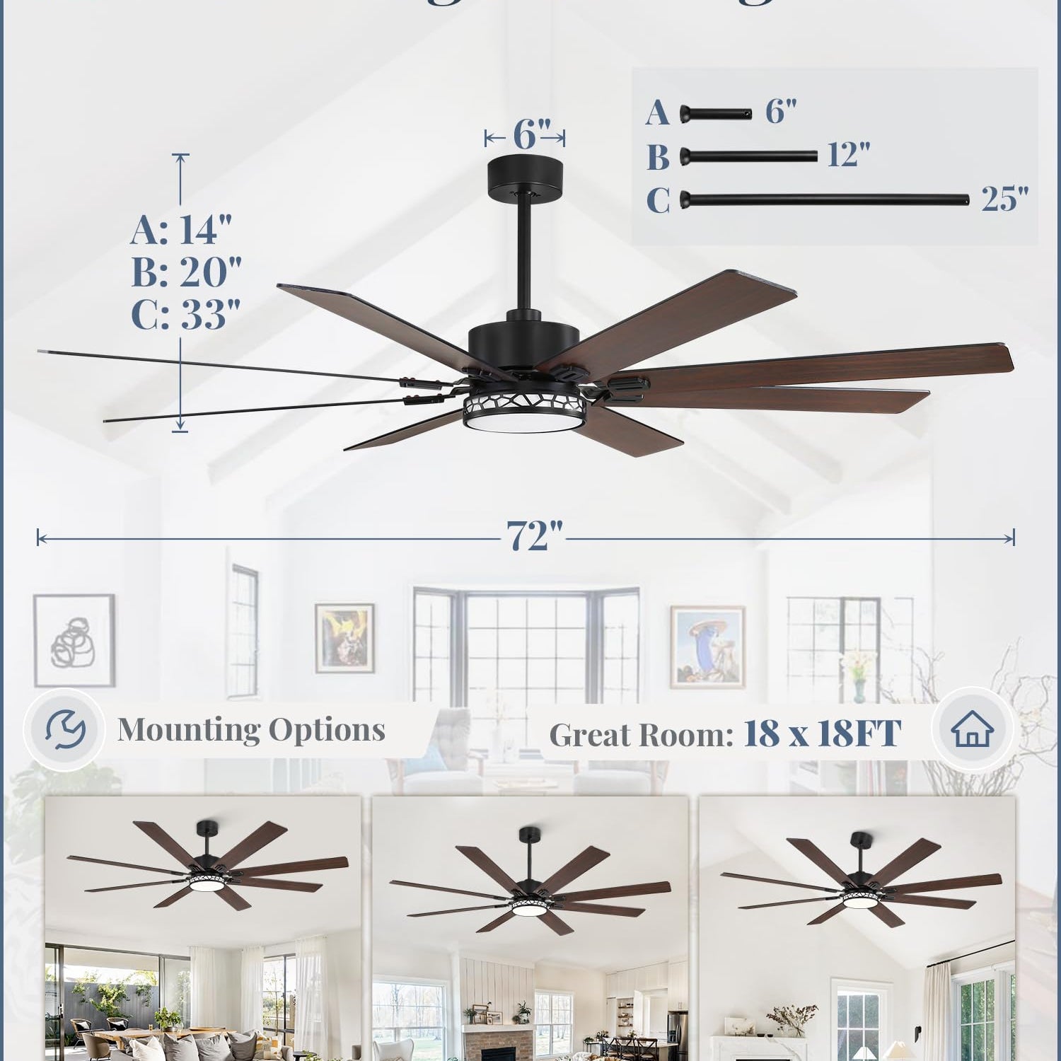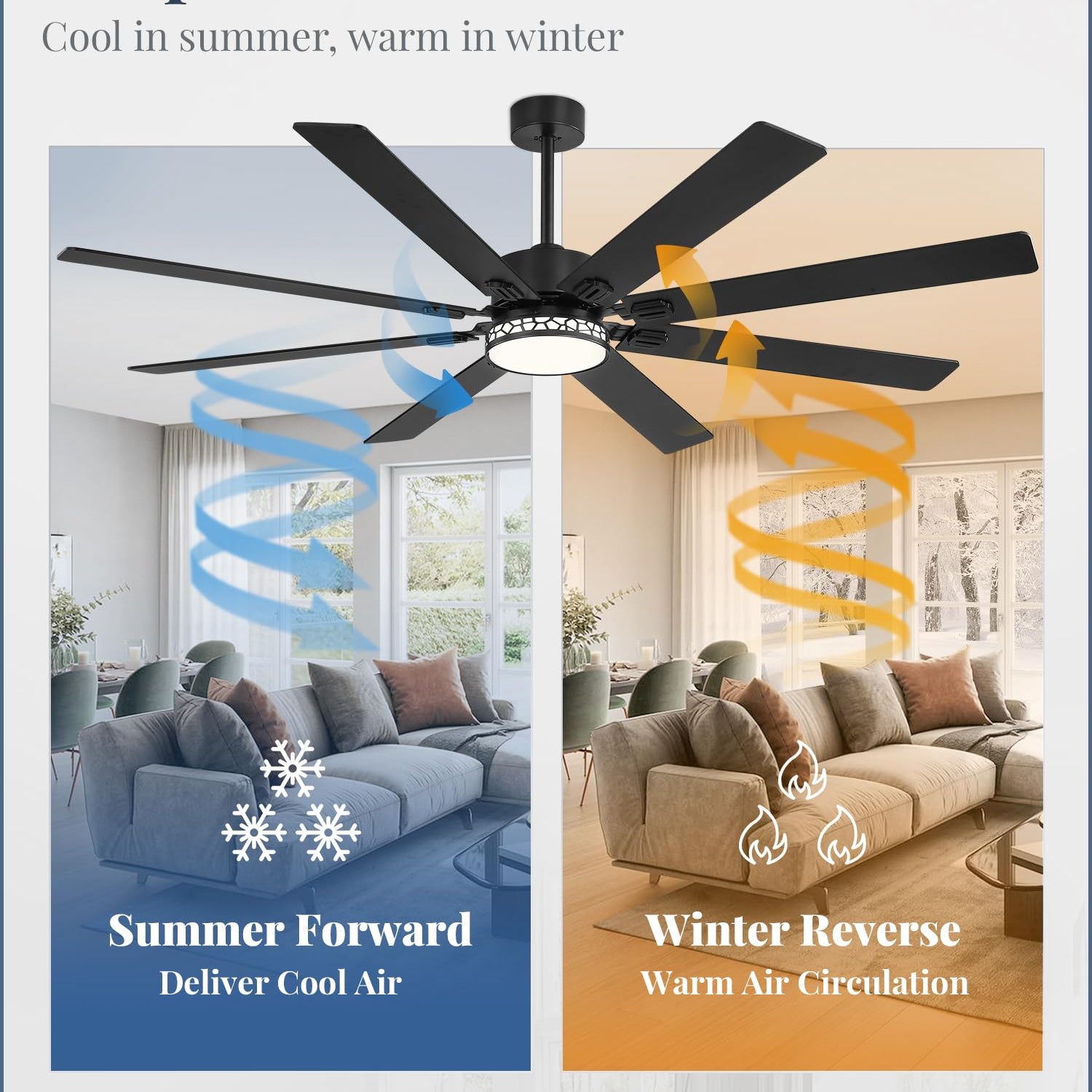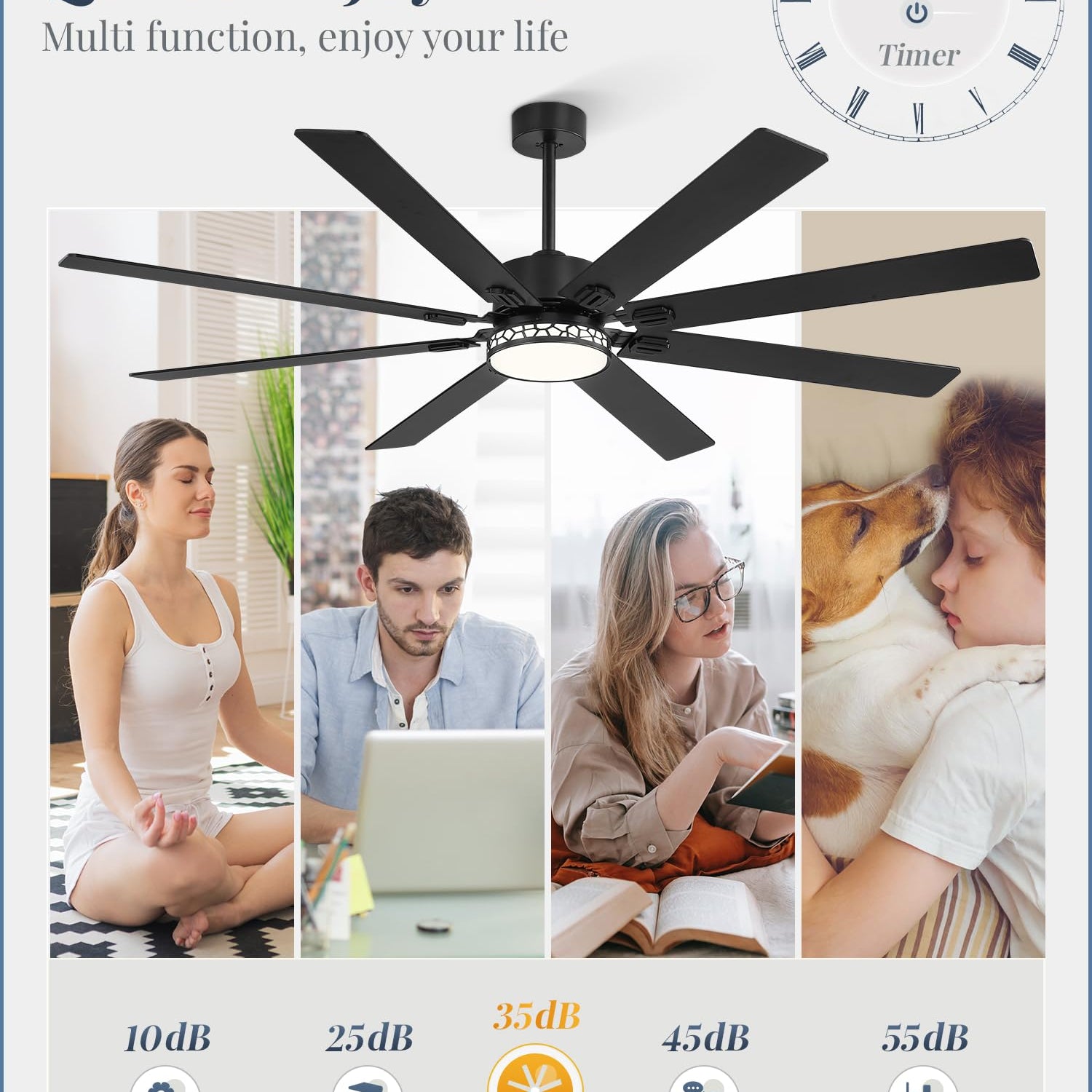 - MULTI-FUNCTION REMOTE CONTROL: Control your fan and light with ease using the 72 inch ceiling fan with light and remote. Features include reversible mode, 1/4/8H timer, 3 color temperatures (3000K/4000K/6000K), and adjustable fan speeds. Simplify your life with customizable settings