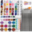 FANDAMEI Nail Art Brush, Nail Design Tools Kit with Nail Art Brushes, Nail Dotting Tools,Fine Glitter,Nail Butterfly, Nail Heart Sequins, Foil