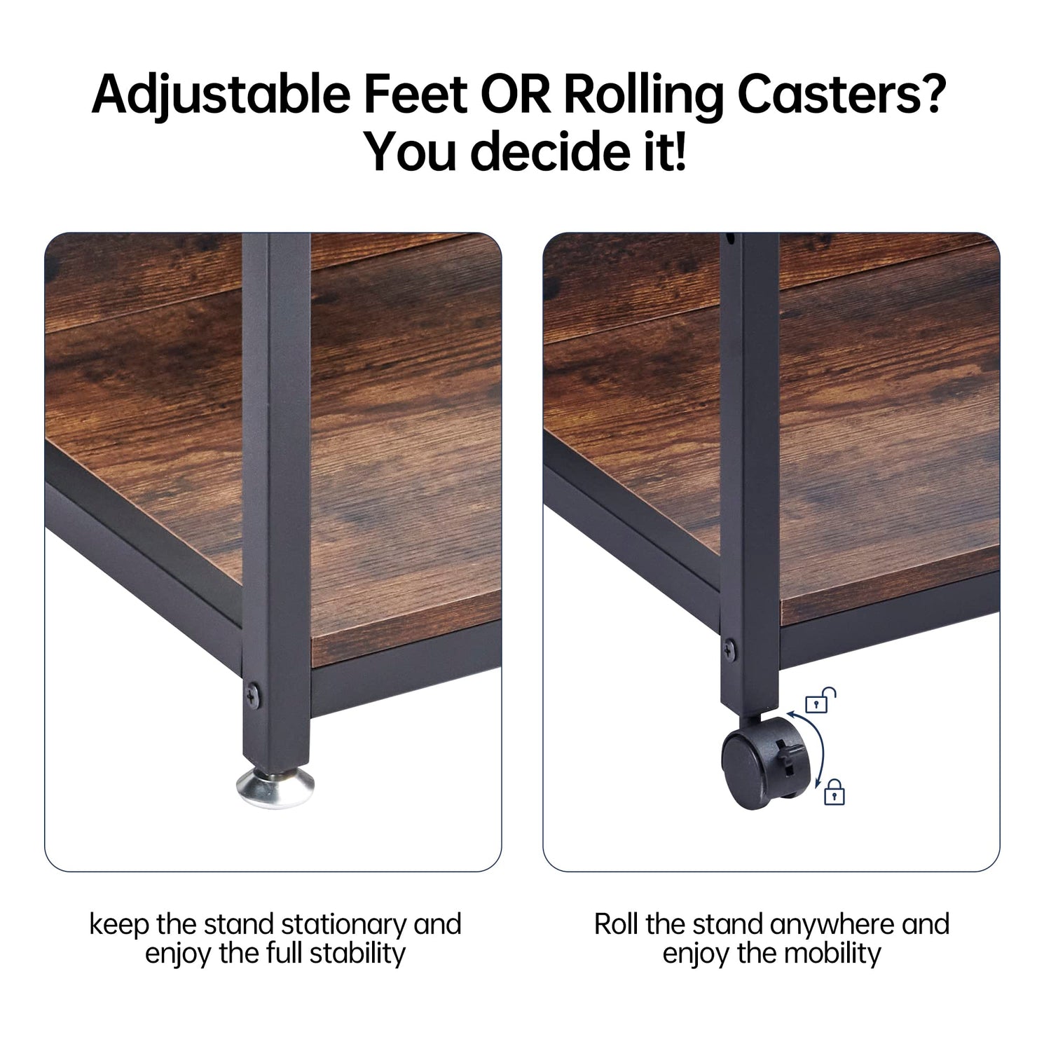 • 【Both the Feet and Casters Included】The package comes with both adjustable feet and rolling casters so that you can either keep the stand stationary with the feet and enjoy the full stability or mount the casters to move the stand around flexibly and enjoy the mobility. 2 of the 4 wheels are lockable to keep the cart in position.