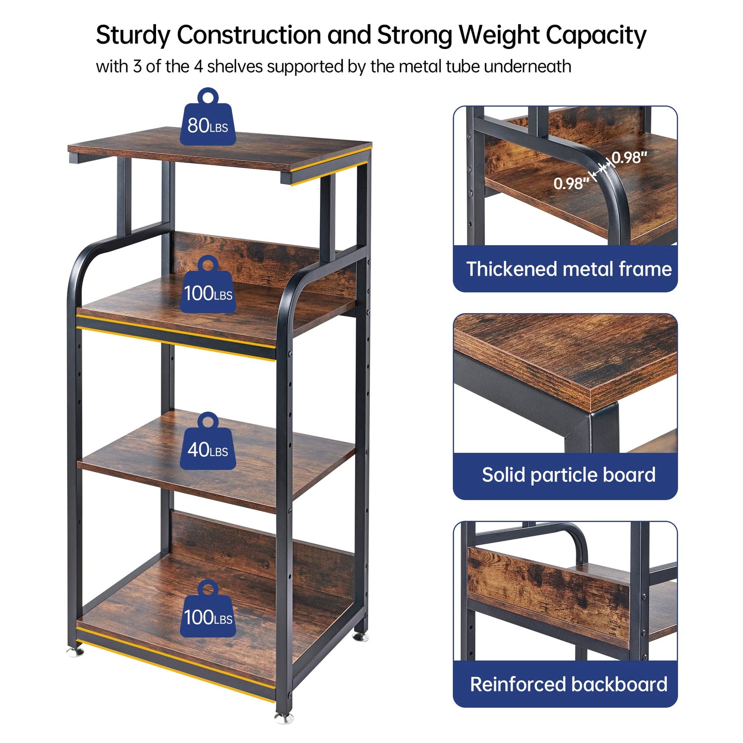 • 【Sturdy and Heavy Duty】With 3 of the 4 shelves braced by the robust steel tube underneath and additional two backboards, this printer stand comes as sturdy as a rock and possesses exceptional load capacity. High quality particle board with water- & wear-resistant surface and 0.98in reinforced square steel tube frame, which is thicker than usual 0.78in tube, makes the printer table quite a durable furniture that will hold up for years to come.