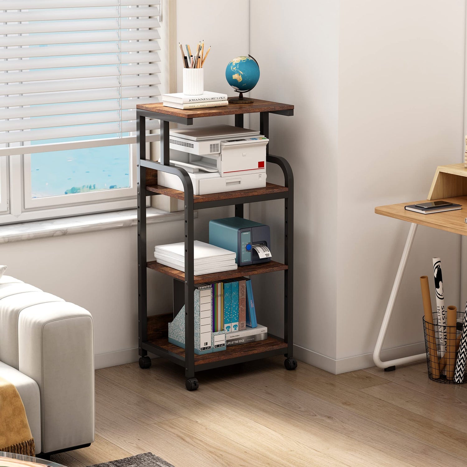 Fannova 4-Tier Printer Stand with Adjustable Storage Shelf, Large Tall Printer Table with Wheels for Home Office Small Spaces Organization, Rustic Brown
