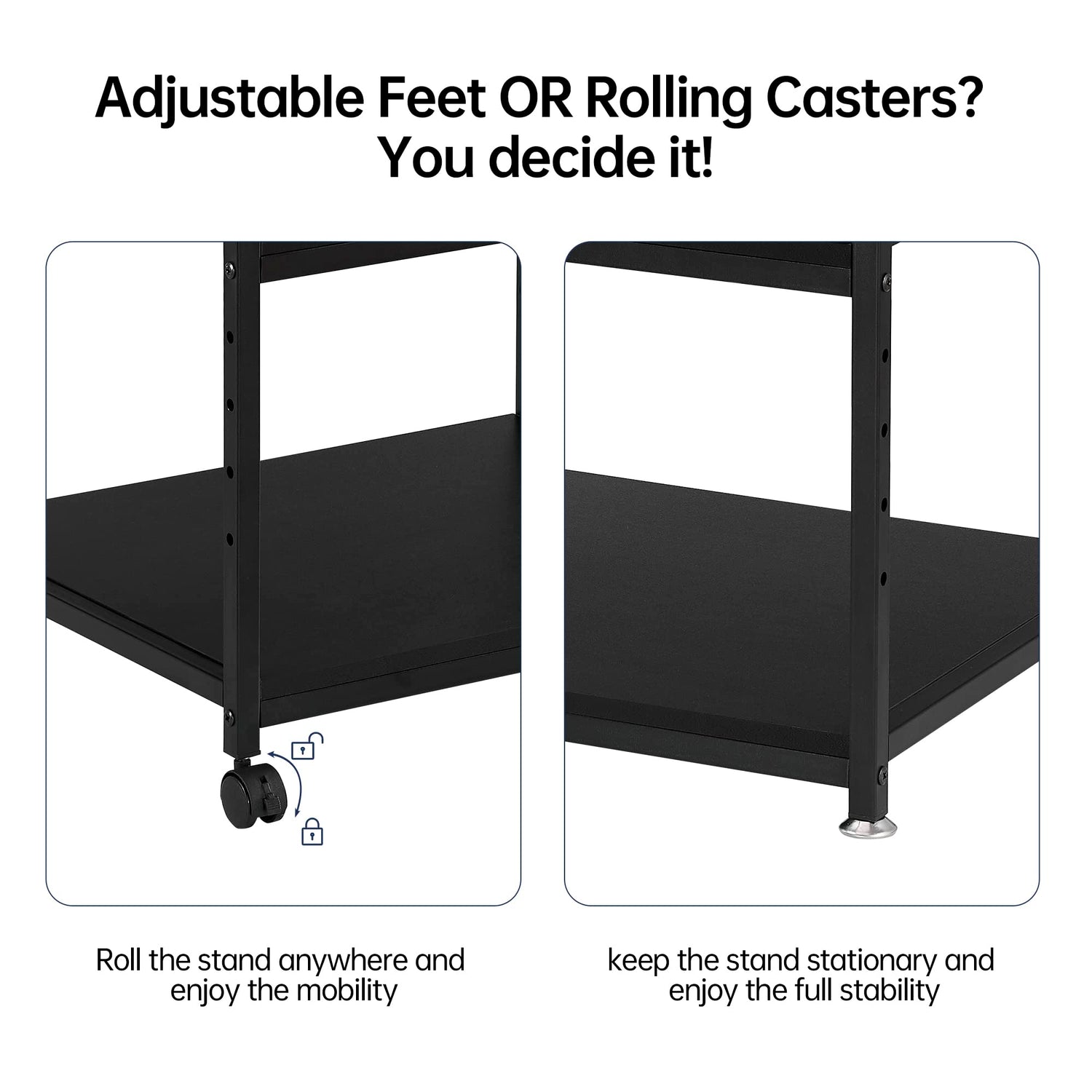 Details: Fannova Printer Stand, 23.6 x18.9 x 29.5 Inches Large Printer Table with Adjustable Storage Shelf, 3 Tier Rolling Printer Cart with Wheels for Home Office, Stand for Heat Press Mini Fridge, Black
