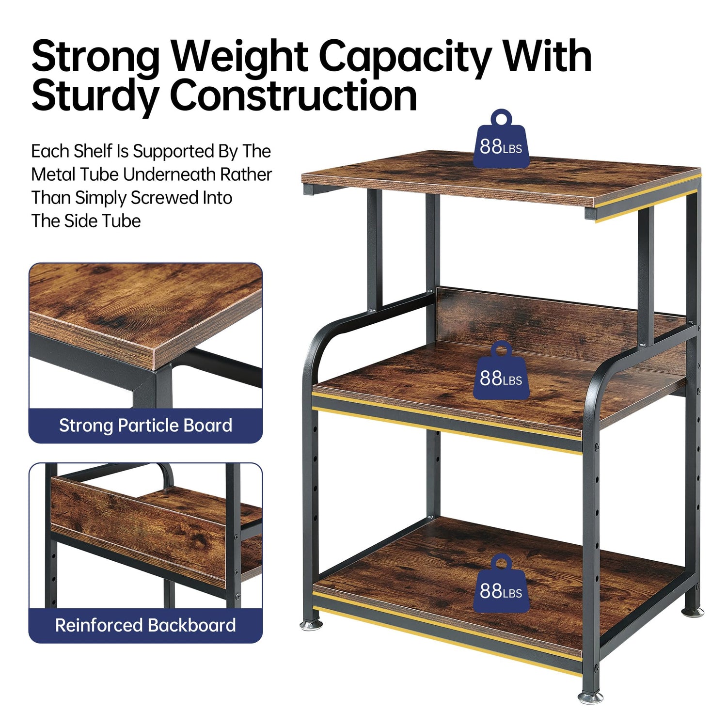 - 【Sturdy and Heavy Duty】With each of the strong particle board braced by the robust steel tube frame underneath rather than simply screwed into the side tube, this printer stand has a solid construction and can feasibly hold up to 88 lb on each tier. Made of CARB P2 class manufactured wood, it is environment-friendly and 100% safe for your health.