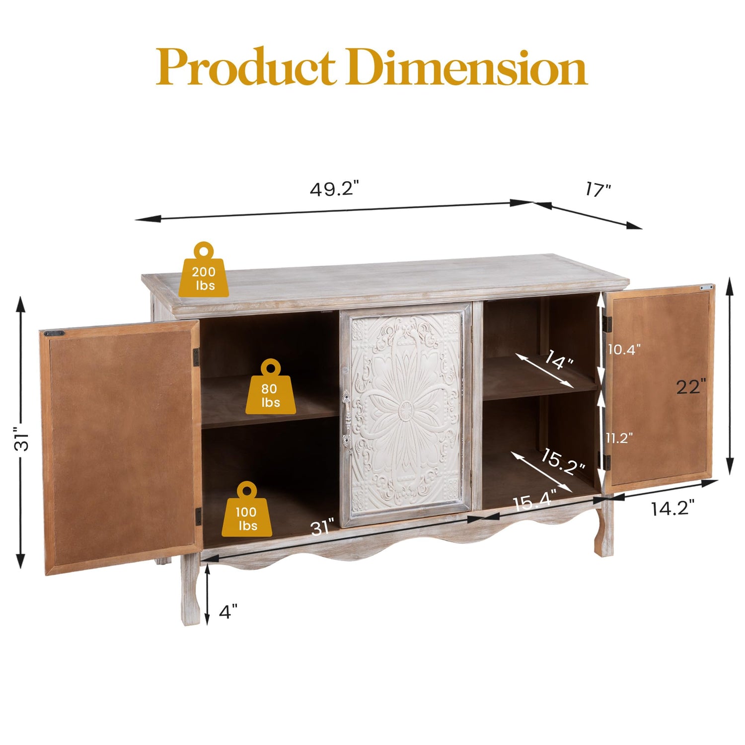 - 【Ample Storage Space】 Our vintage entryway cabinet has overall dimensions of 49.9" x 31" x 26". The spacious tabletop can easily accommodate various items such as decorative pieces and everyday essentials. The deep and wide interior design of the sideboard cabinet offers ample storage space. The combination of open and closed compartments helps keep your home environment neat and organized.