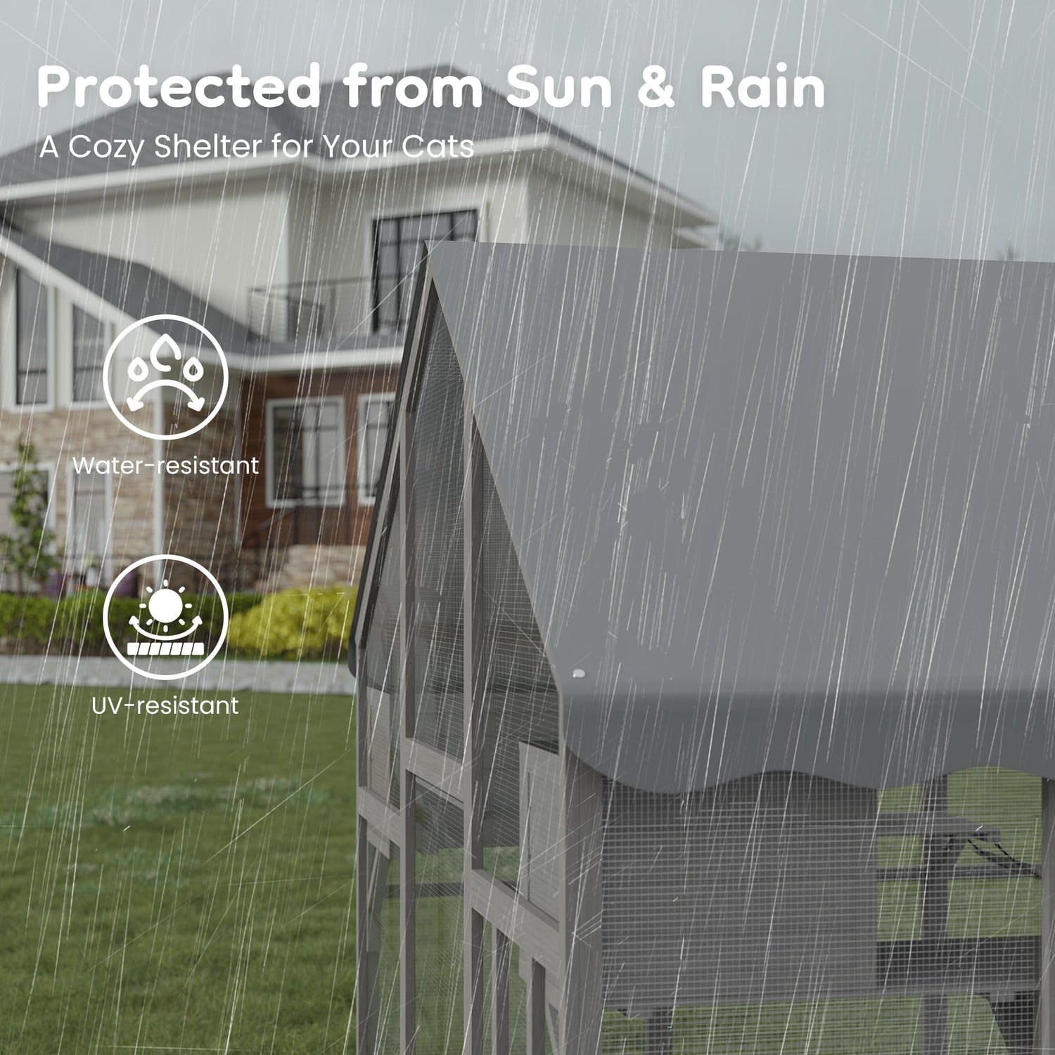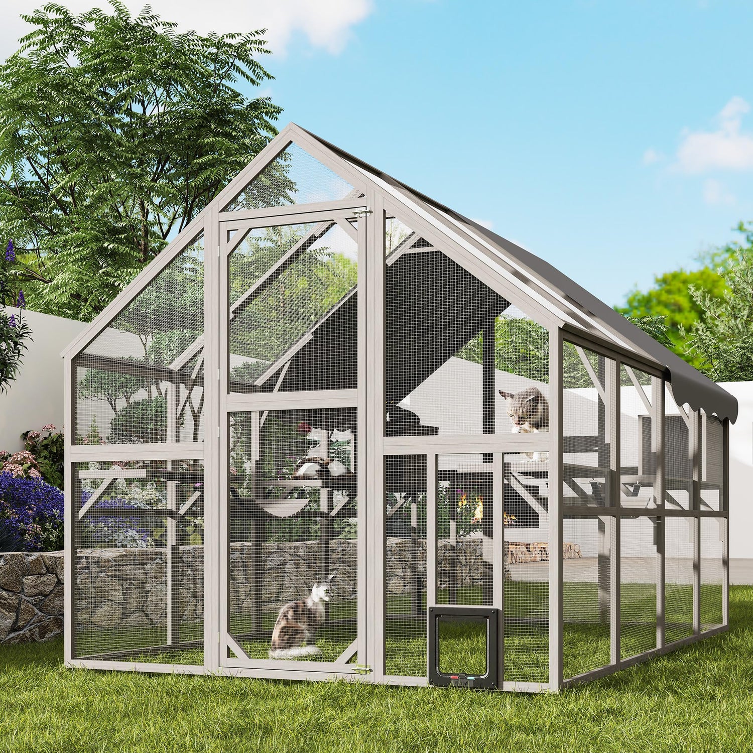 - Simple Setup & Multi-Purpose Design - Assembly is a breeze with the included manual and video guide—just 1-2 hours for two people. Weighing 138 lbs, this outdoor cat cage stays firmly in place, even during the most energetic play sessions. Enjoy peace of mind with our 1-year warranty!