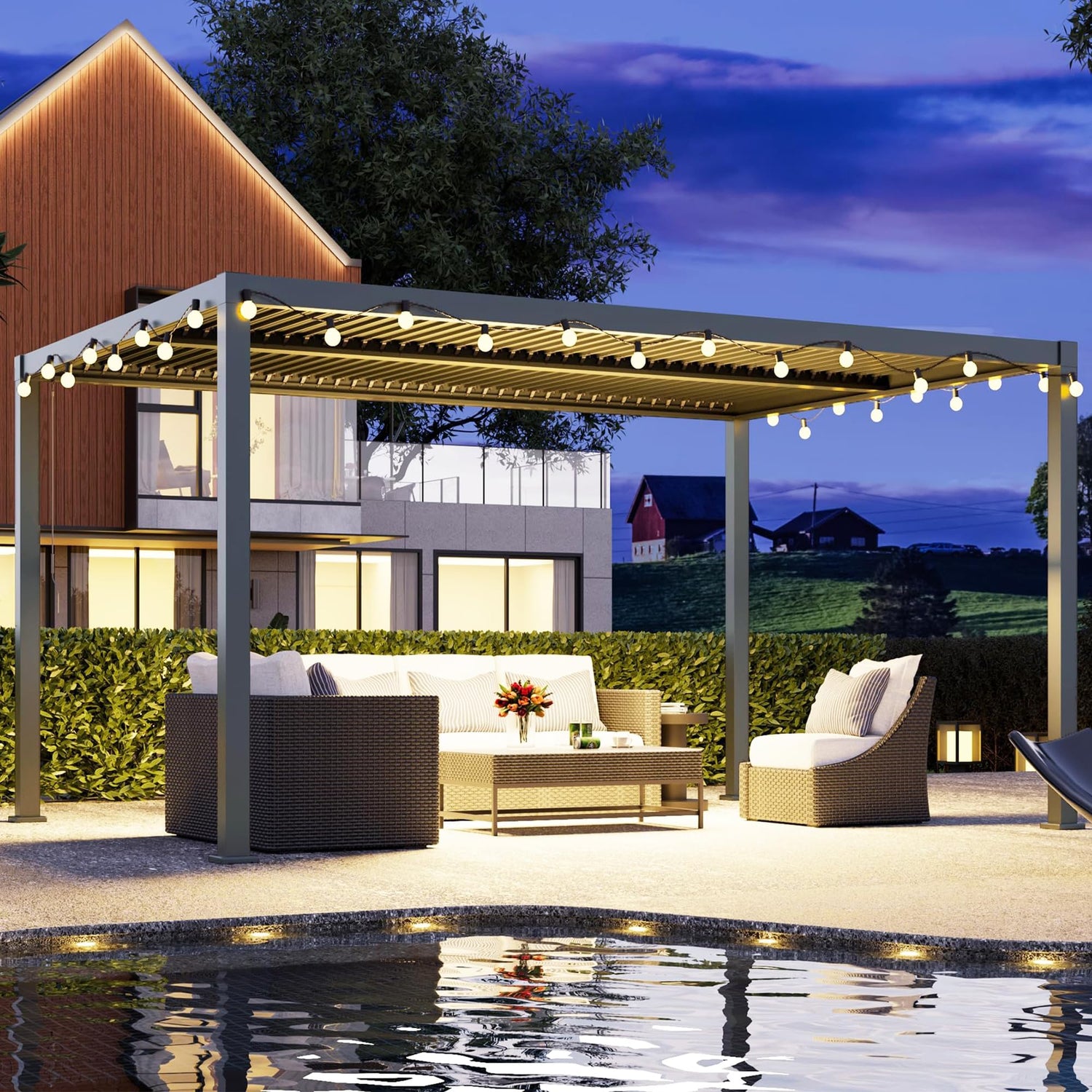 - 【Versatile Adjustable Roofs】- Featuring two independently adjustable aluminum roofs, our pergola allows you to easily control the amount of sunlight and shade over an area of up to 192 square feet. Adjust the roof from 0°to 90° to enjoy the perfect balance of sun and shelter, suitable for all your outdoor gatherings, be it parties, BBQs, or quiet family time.