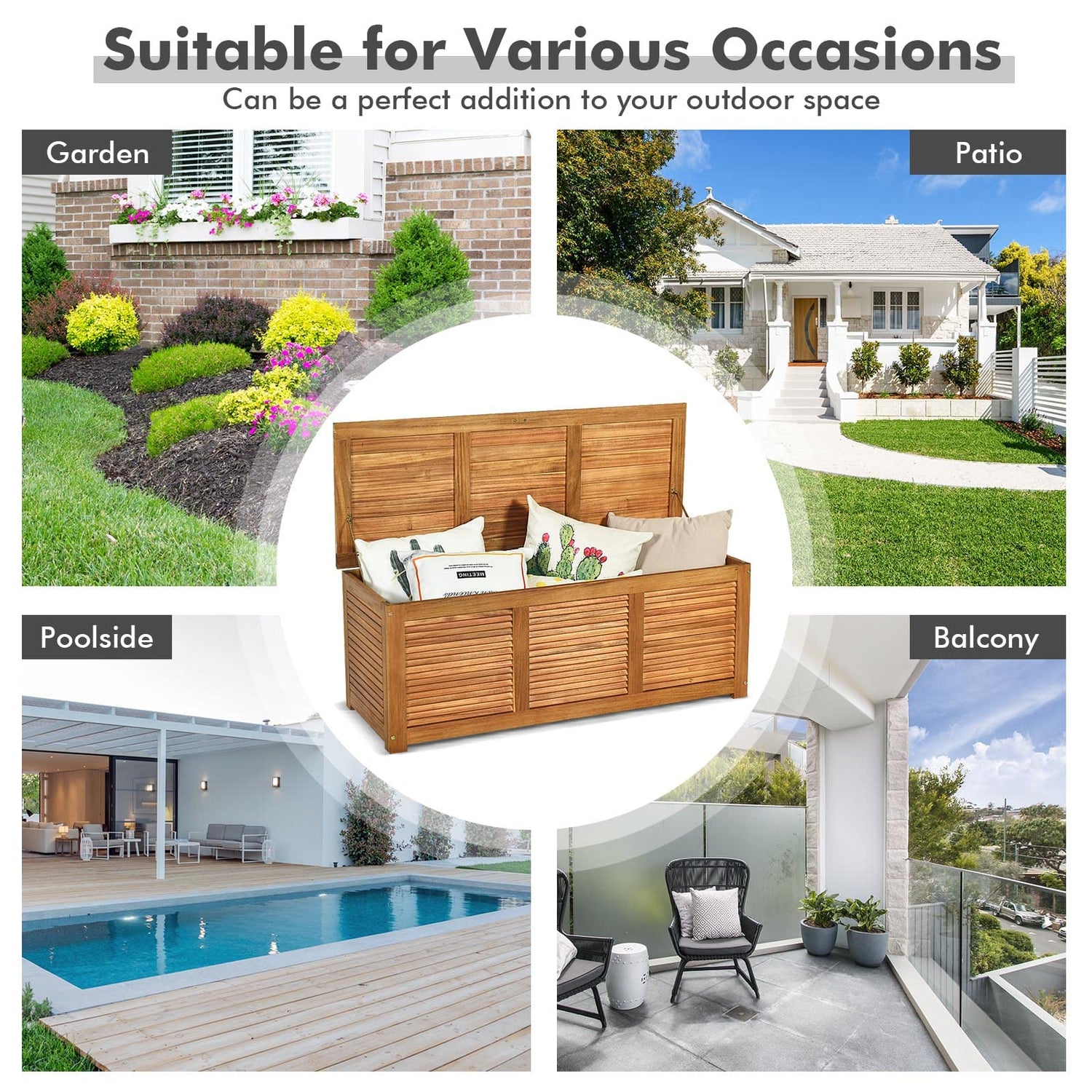 FANTASK 47 Gallon Acacia Wood Deck Box: Stylish Outdoor Storage & Seating Solution