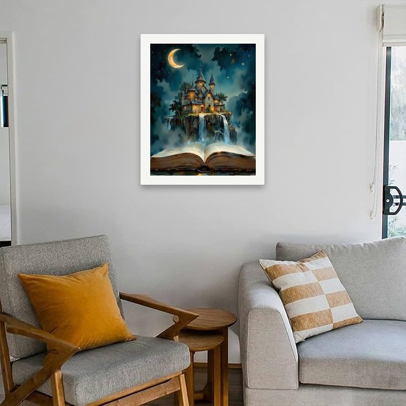 Fantasy Paint by Numbers Kit for Adults - DIY Storybook Castle with Waterfalls and Open Book Painting on Canvas 16x20 Inches, Acrylic Paint Set for Beginners,Art for Home Decoration or Gifts