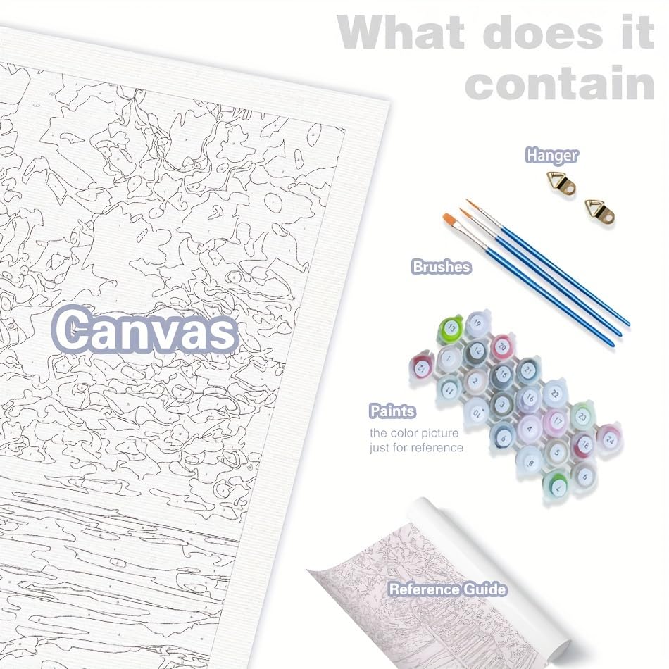 - Complete Paint by Numbers Kit: Includes a 16x20 inch pre-printed canvas, acrylic paints, 3 matched paintbrushes, instruction manual, hooks, and an original card. Everything you need to create a beautiful painting.
