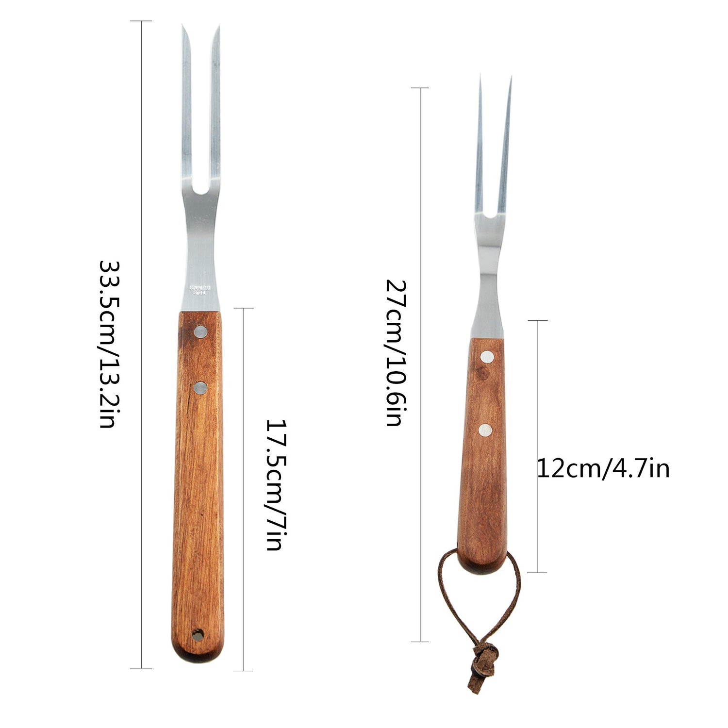 - Size: The total length of the fork is approx. 10 inches/13 inches and the length of the wooden handle is approx. 4.92 inches/6.9 inches, the stainless steel fork head is approx. 5.08 inches/6.1 inches