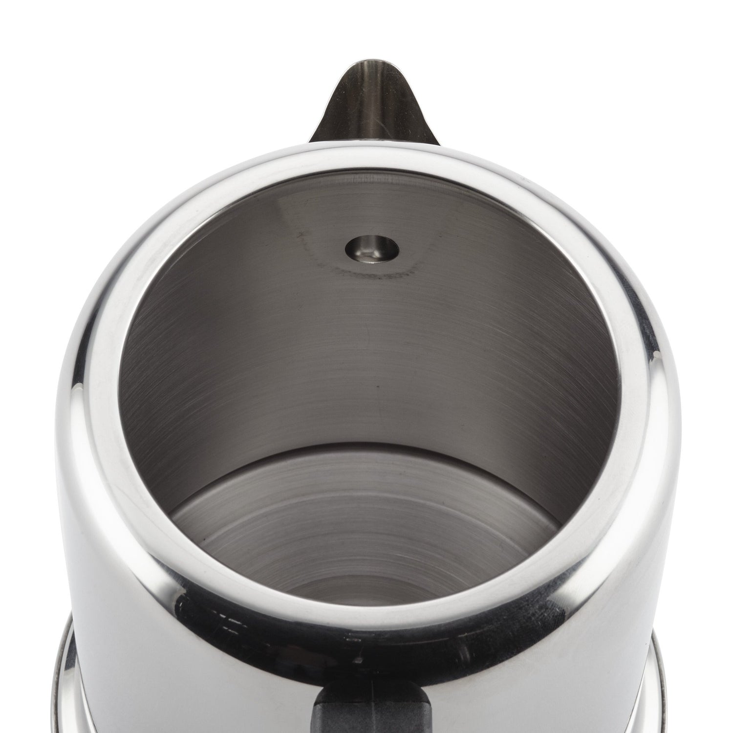 Details: Brewing coffee on the stovetop extracts a fuller, richer flavor, and this Farberware 47053 Classic Stainless Steel Yosemite 12-Cup Coffee Percolator is ready to brew four to twelve cups of your favorite blends. The heavy-duty stainless steel is polished to a mirror finish for a classic touch and the sleek and traditional look fits in with any kitchen decor. A comfortable handle with iconic styling offers a confident grasp and is designed to provide a balanced grip while making coffee or pouring delicious French roasts or flavored coffee blends. A non-reactive coffee maker interior keeps water from absorbing any undesirable odors or tastes. And, with a permanent percolator filter basket, there's no need to deal with messy paper filters. A tight-fitting lid seals in heat and the sturdy, see-through glass knob lets you know when percolating begins and ends. Fully immersible and dishwasher safe, this percolator makes a great addition to any of the Farberware collections.