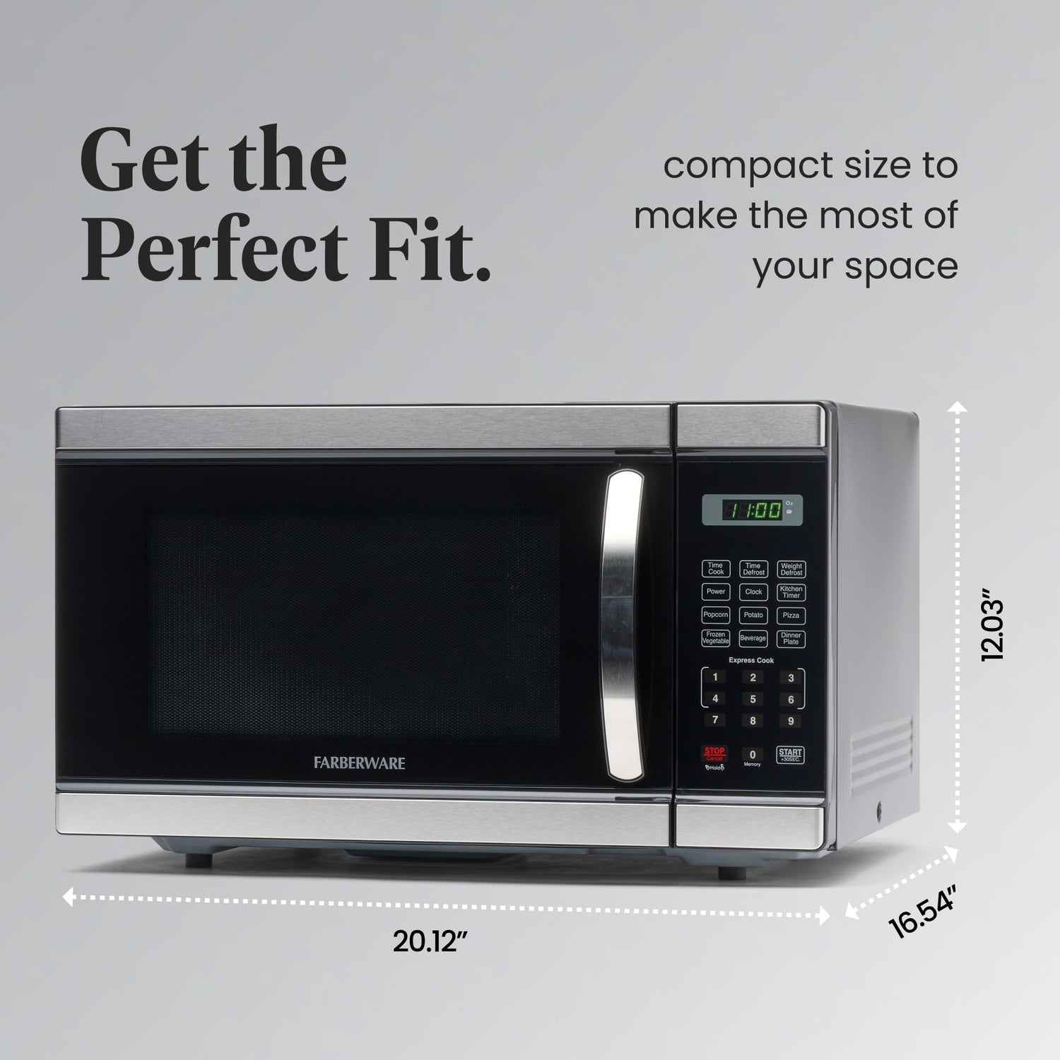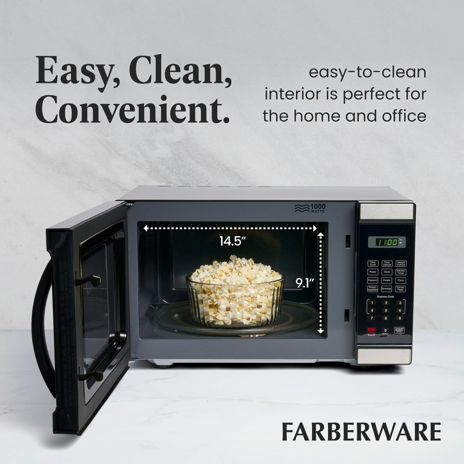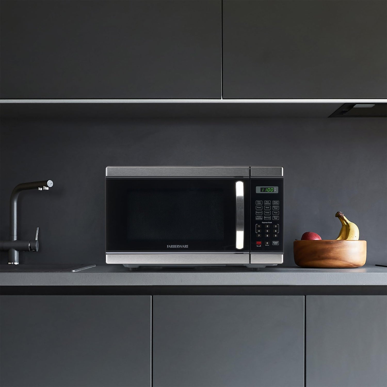 Farberware Countertop Microwave 1000 Watts, 1.1 Cu. Ft. - Microwave Oven With LED Lighting and Child Lock - Perfect for Apartments and Dorms - Easy Clean Stainless Steel