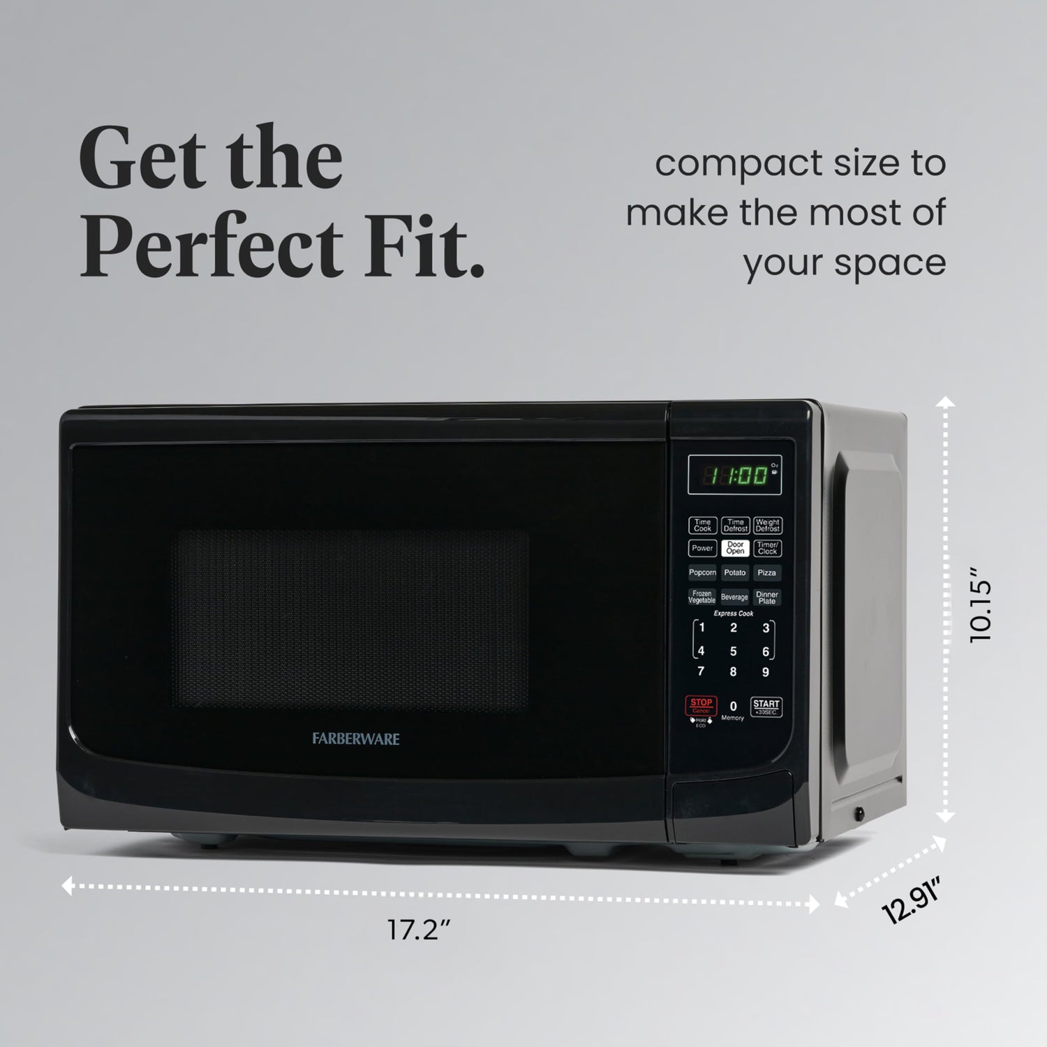 - PERFECT SIZE: Measuring 0.7 cu ft, this microwave is the ideal small-space solution that offers full-sized cooking in a compact space. It features an easy-to-clean interior and exterior and is perfect for the home or office.