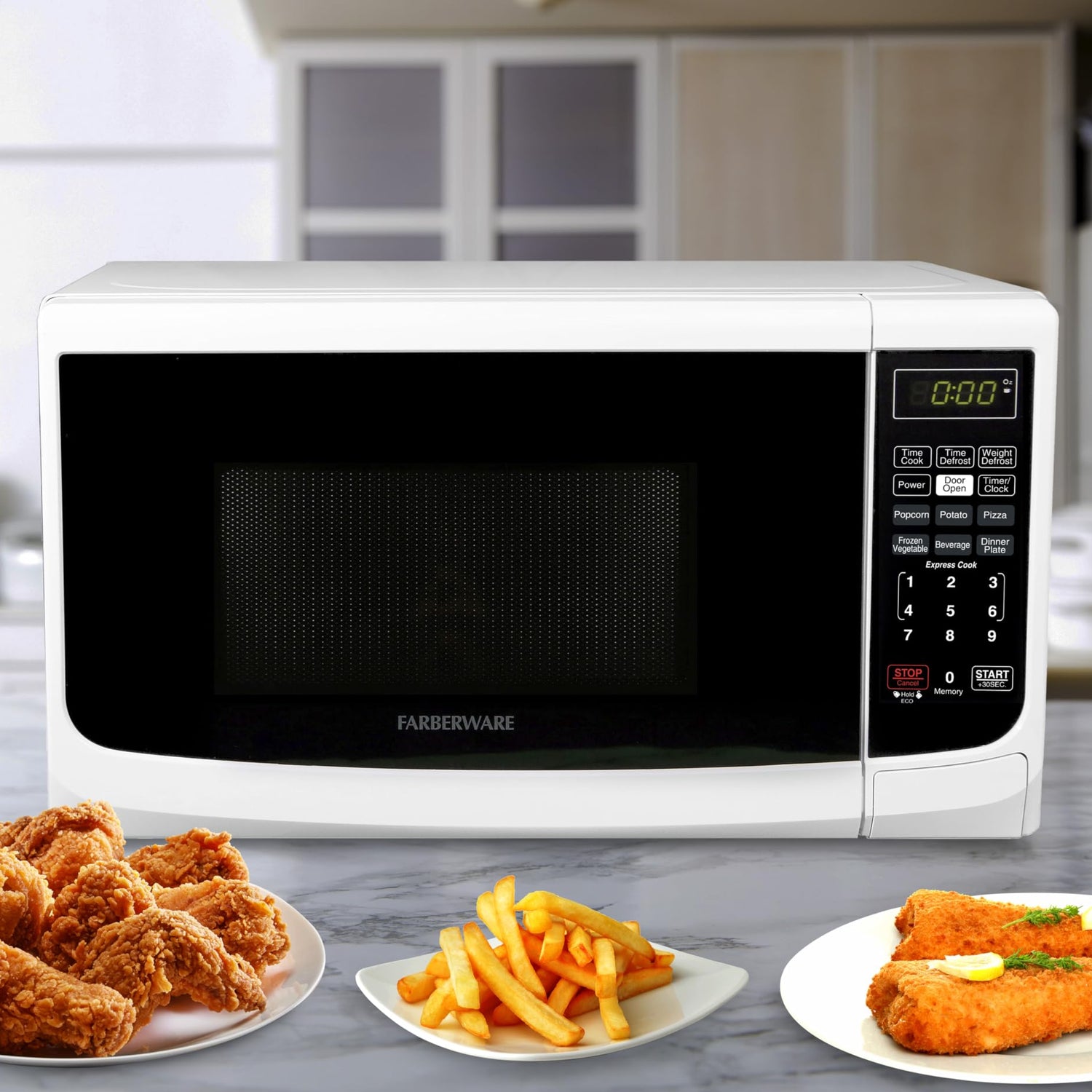 - POWERFUL SETTINGS: This microwave has ten power levels with multi-stage cooking. You can fully customize your cooking with six one-touch options, including popcorn, potato, and pizza. Defrost by weight or by time settings to make quick work of any task.