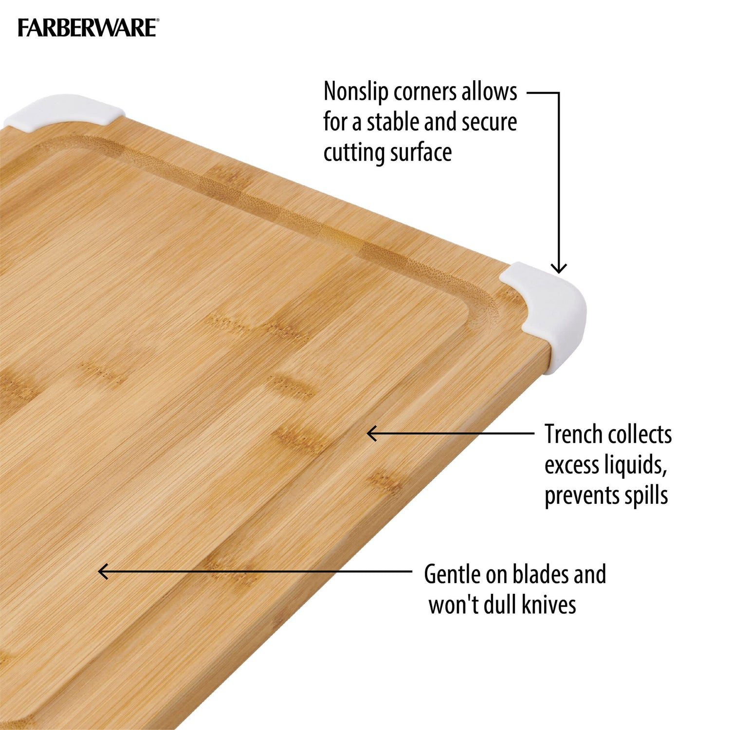 Farberware Nonslip Bamboo Cutting Board with Juice Groove, 11x14 Inch, White