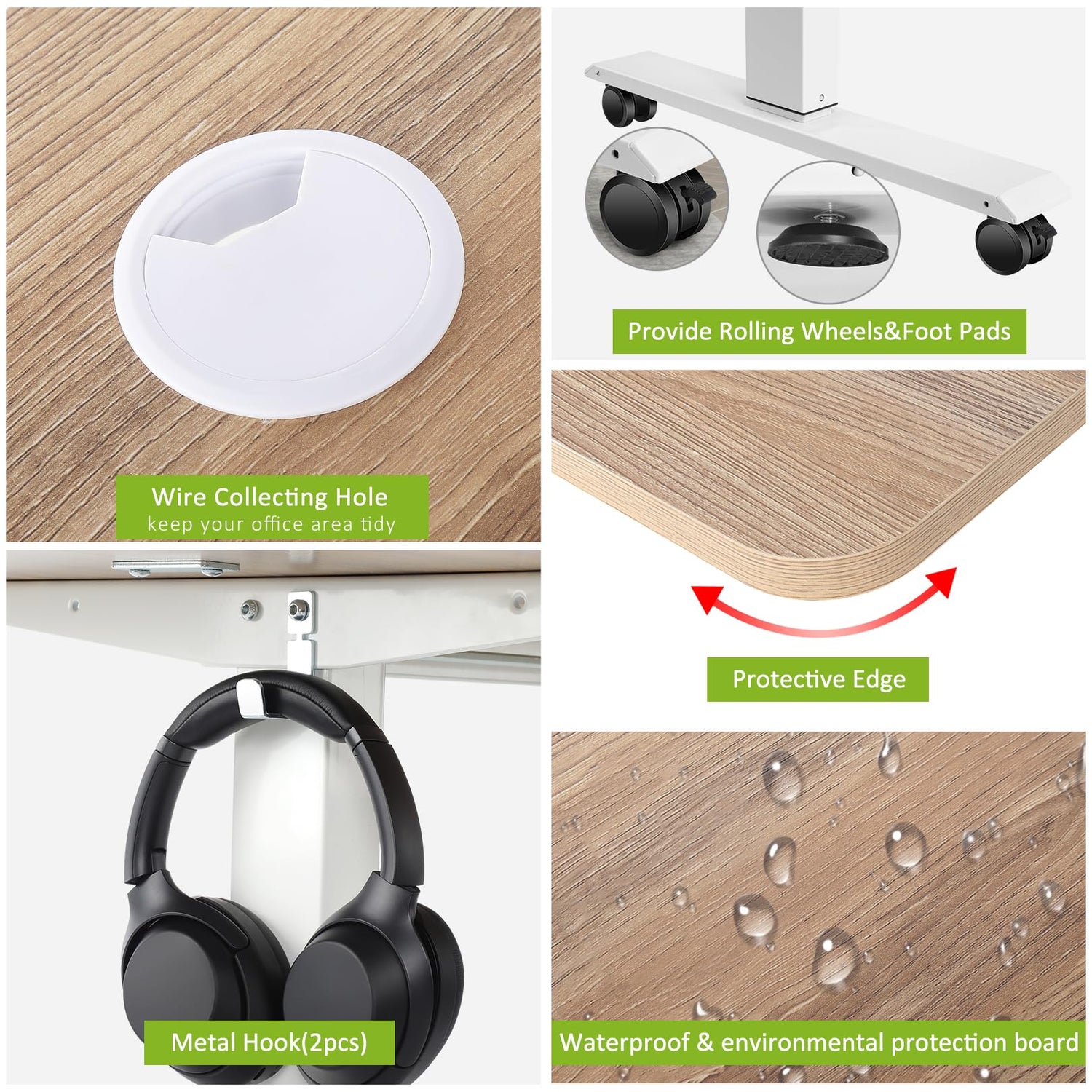 Details: 【Humanized & Multifunctional Standing Desk:】The large 55" x 24" standing desk provides plenty of space for a variety of office tasks. The tabletop is water and wear-resistant and has 2 cord retraction holes to keep your office area neat and tidy. Provide a large mouse pad, 4 Caster Wheels, 4 non-slip heightening foot pads, and 2 Hooks