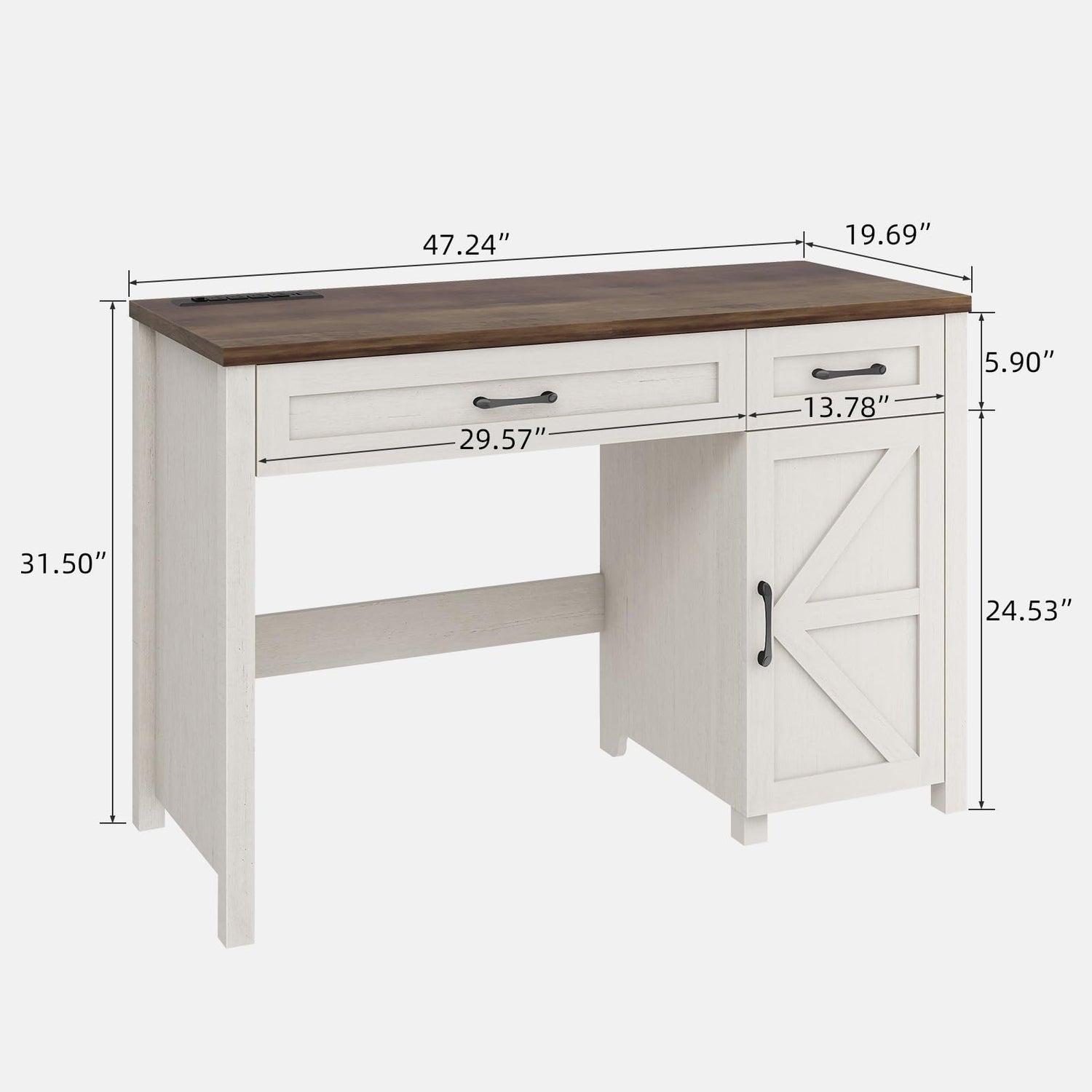 Farmhouse 47" Executive Desk, Computer Desk with Drawers and Cabinet, Workstation Computer Desk for Home Office and Study.