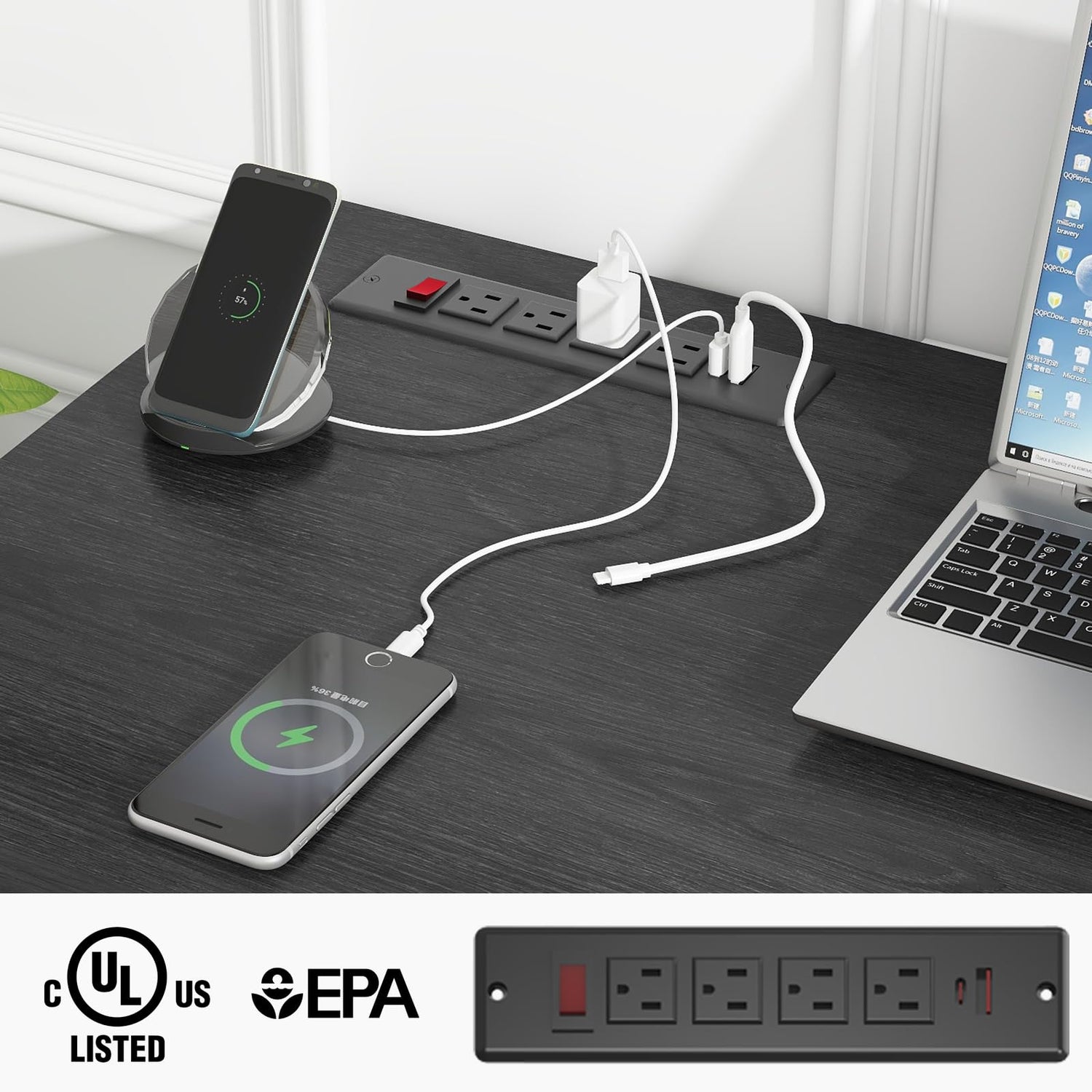- 【Built-in Charging Station】Equipped with four power outlets and two USB ports, the built-in charging station allows you to charge up to six devices at once. A convenient on-off switch ensures safe energy management, making it easy to power your phones, tablets, laptops, and other electronics safely and conveniently in your workspace.