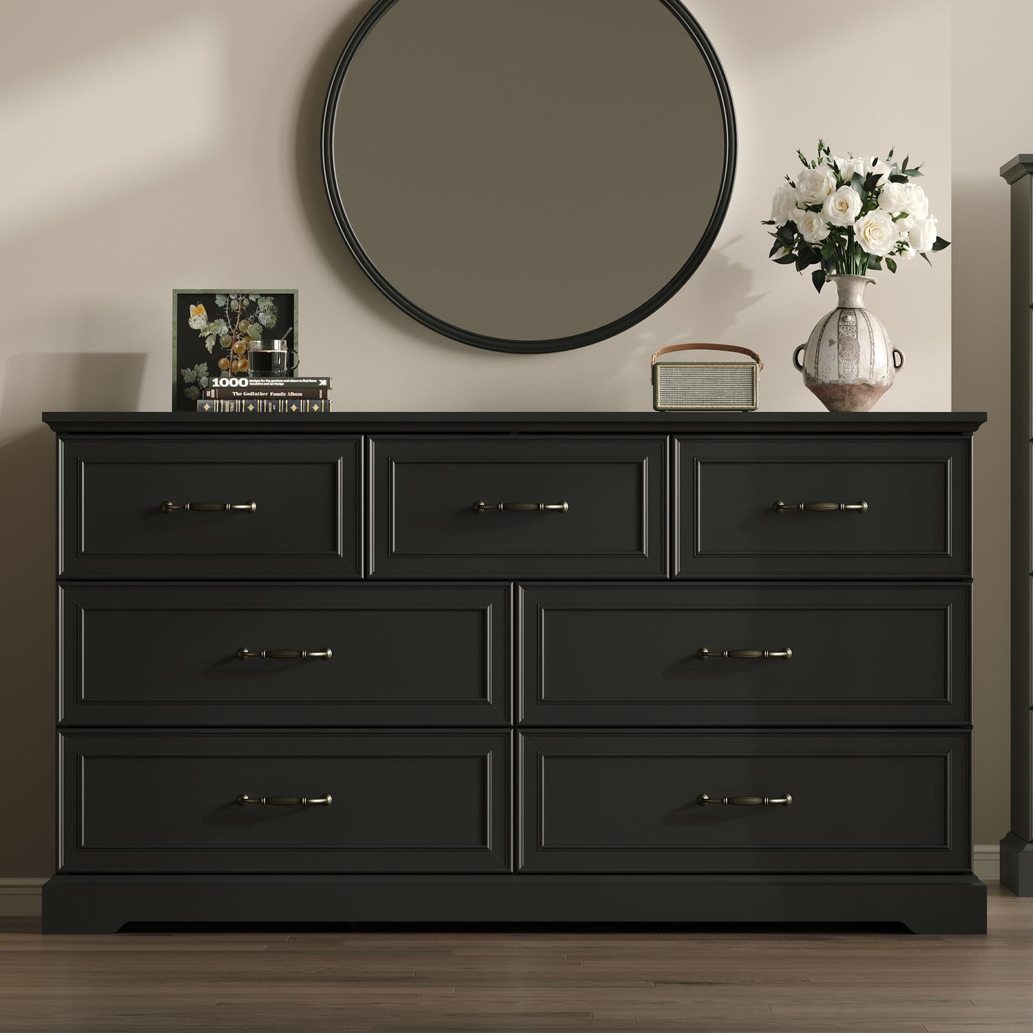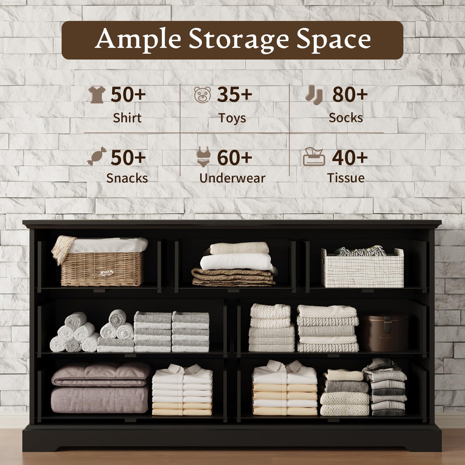 - 【Versatile Wood Dresser】Except for being long dresser in your bedroom or as a console table in your living room, this storage cabinet also can be used as night stand or side table. The tall white/black dresser could easily fit in various spaces such as living room, bedroom, hallway, entryway and closet. It is an ideal choice for small spaces such as apartment or dorm room